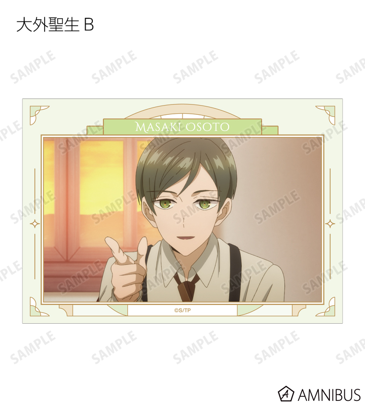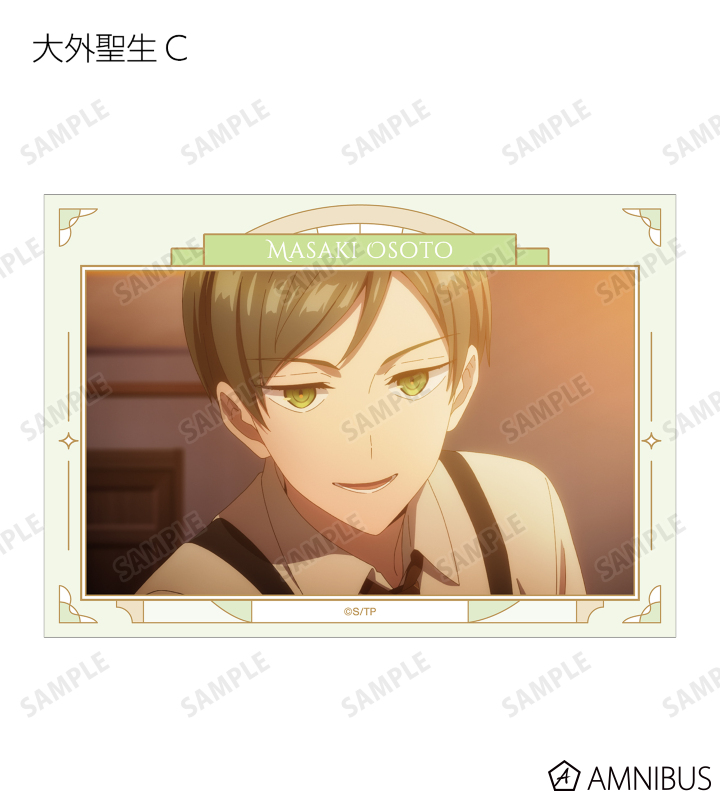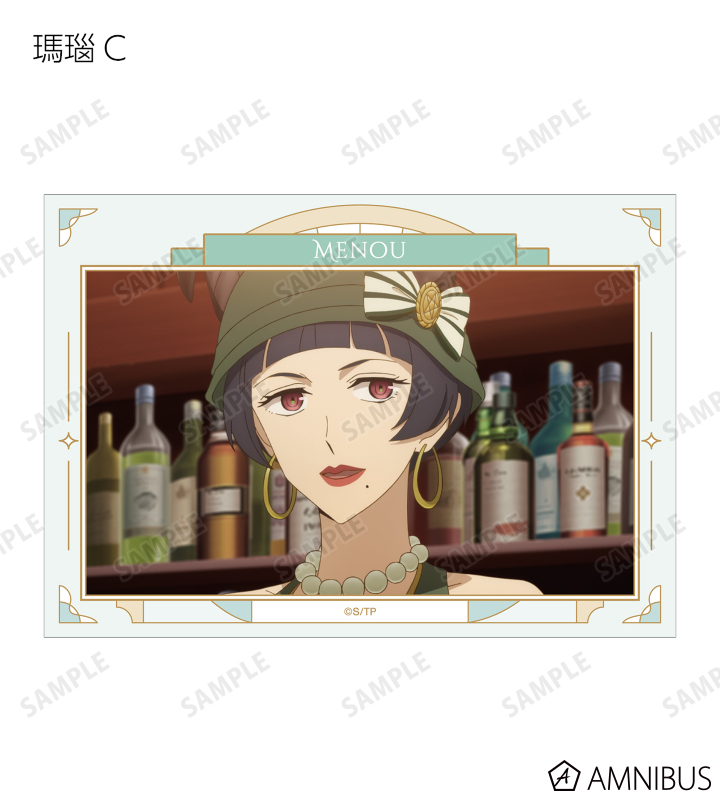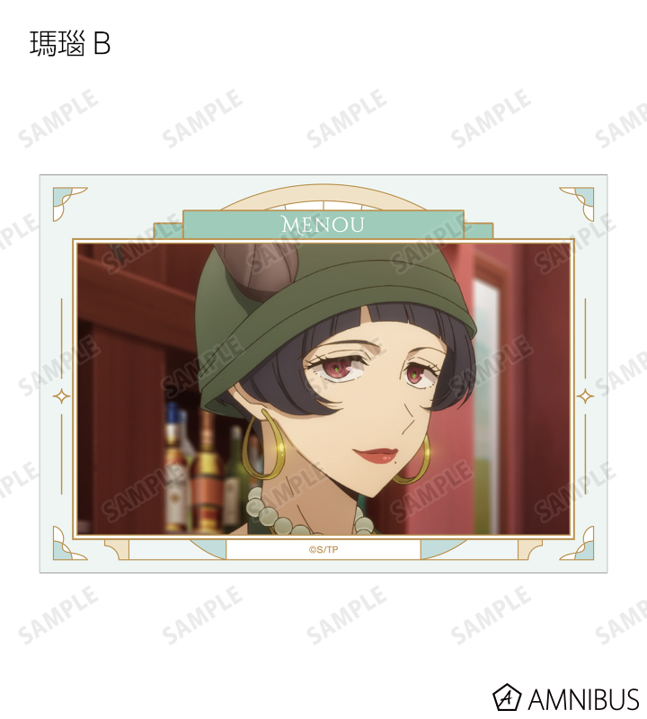 塚原音子、阿鳥遥斗、大外聖生、支配人、ルリ、瑪瑙、切子の印象的なシーンをブロマイドに仕上げました。