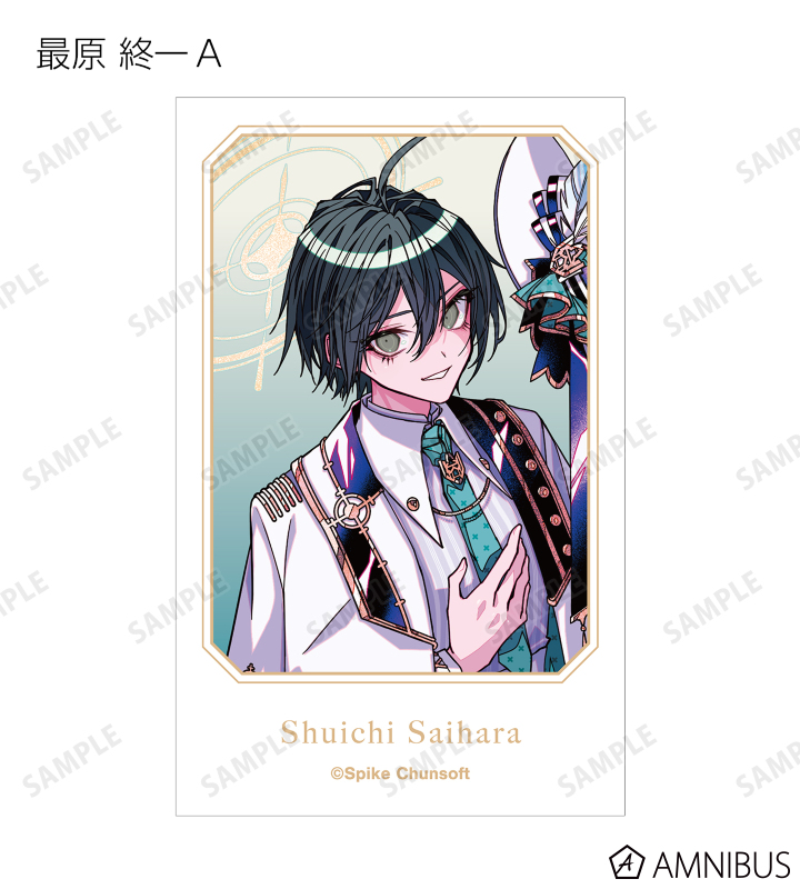 めつぶしあんこ先生描き下ろしイラストの苗木 誠、霧切 響子、十神 白夜、日向 創、狛枝 凪斗、七海 千秋、赤松 楓、王馬 小吉、最原 終一をイラストカードに仕上げました。