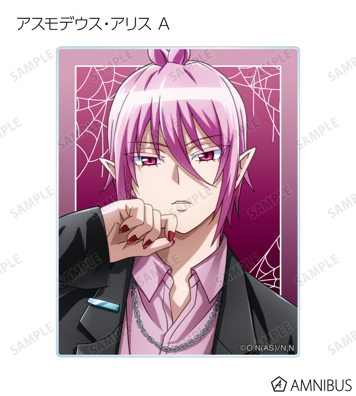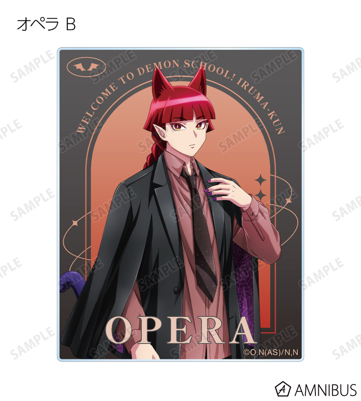 鈴木入間、悪入間、アスモデウス・アリス、ウァラク・クララ、ナベリウス・カルエゴ、オペラの描き下ろしイラストを、透明感が綺麗なアクリルカードに仕上げました。