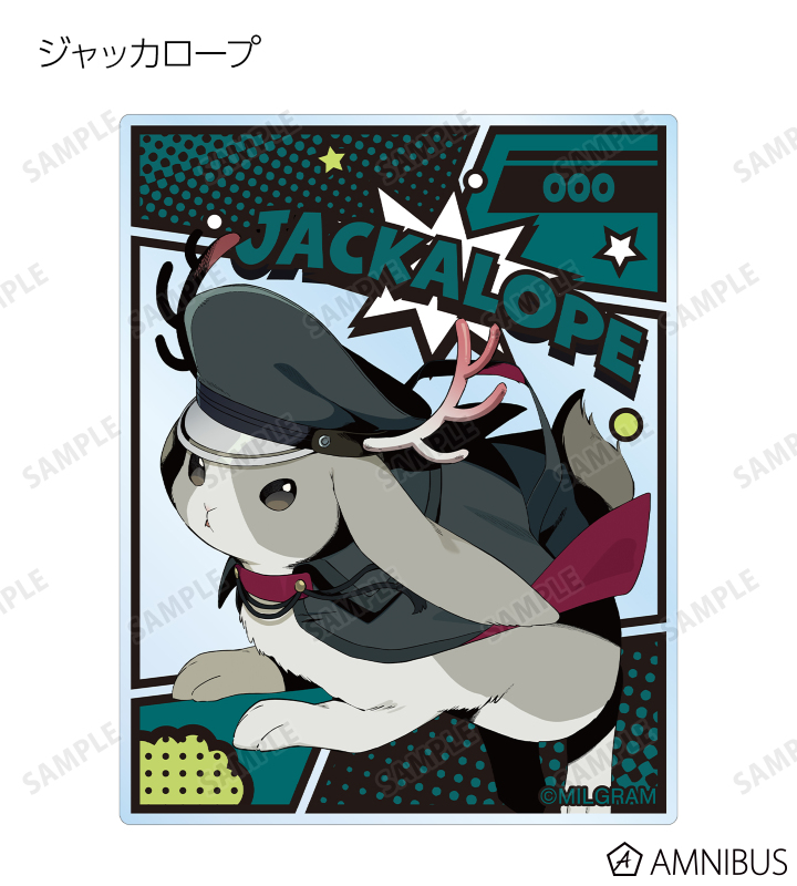 エス、ジャッカロープ、ハルカ、ユノ、フータ、ムウ、シドウ、マヒル、カズイ、アマネ、ミコト、コトコの描き下ろしイラストをアクリルカードに仕上げました。