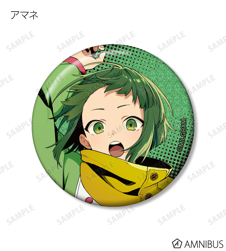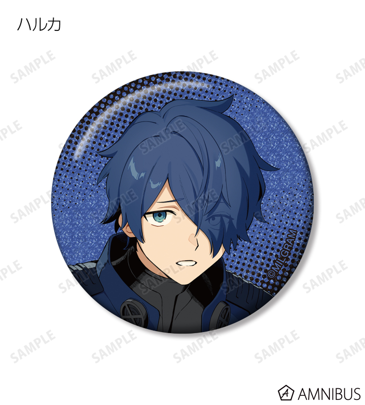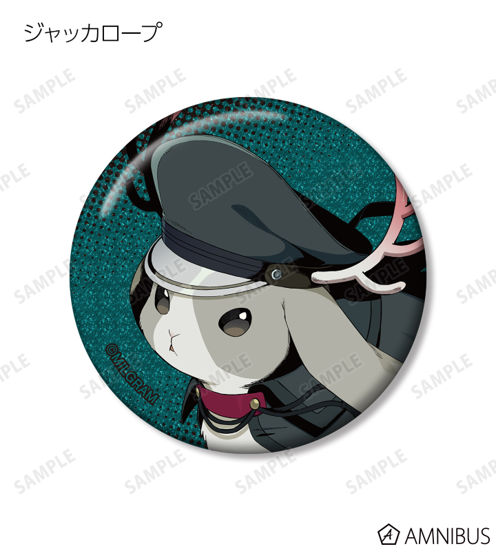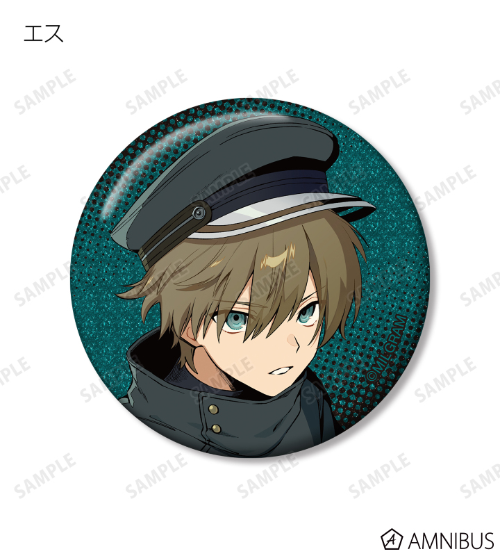エス、ジャッカロープ、ハルカ、ユノ、フータ、ムウ、シドウ、マヒル、カズイ、アマネ、ミコト、コトコの描き下ろしイラストをグリッター加工を施した缶バッジに仕上げました。