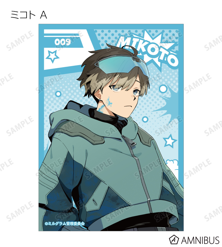 エス、ジャッカロープ、ハルカ、ユノ、フータ、ムウ、シドウ、マヒル、カズイ、アマネ、ミコト、コトコの描き下ろしイラストをブロマイドに仕上げました。
