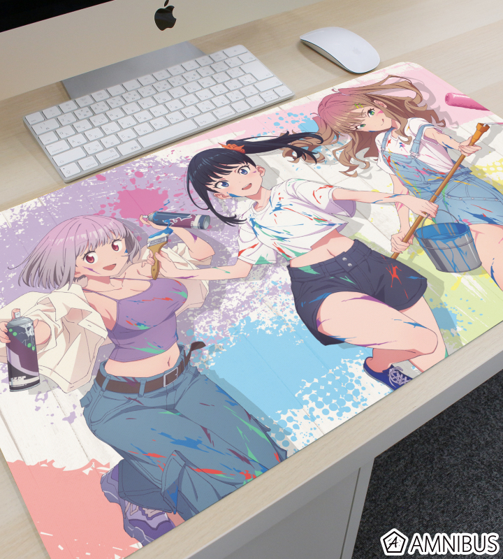 宝多六花、新条アカネ、南 夢芽の描き下ろしイラストを、マルチデスクマットに仕上げました。