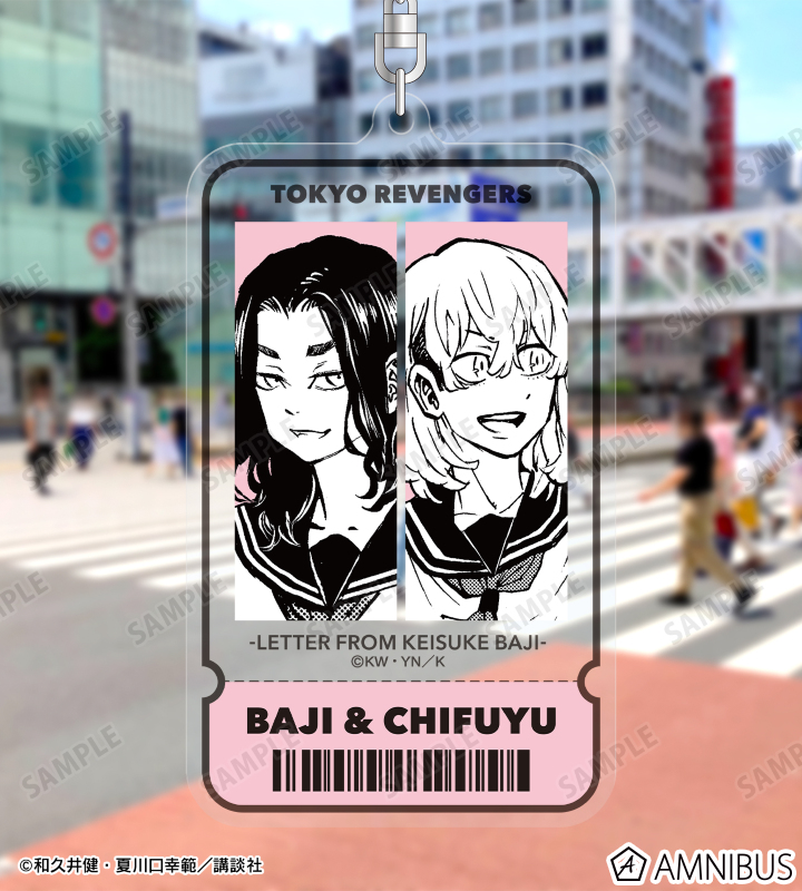 場地 圭介、松野 千冬の1巻本体表紙イラストをBIGなチケット風のアクリルキーホルダーに仕上げました。