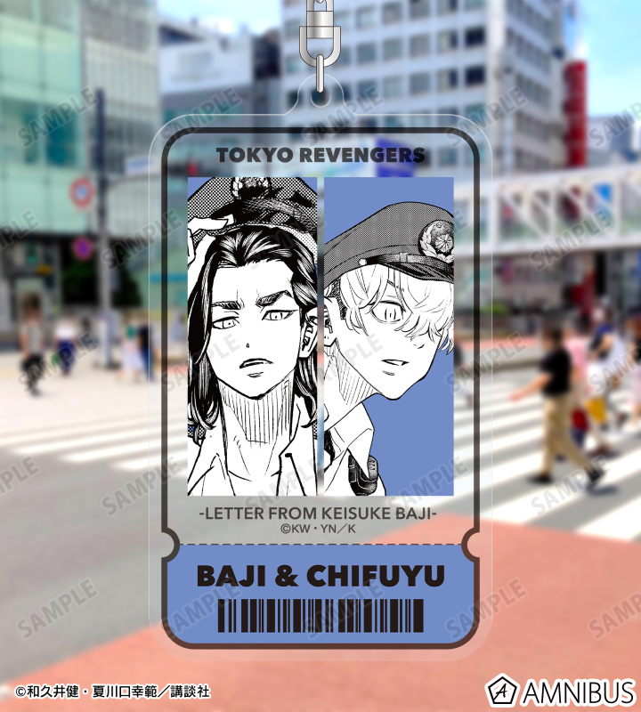 場地 圭介、松野 千冬の3巻本体表紙イラストをBIGなチケット風のアクリルキーホルダーに仕上げました。
