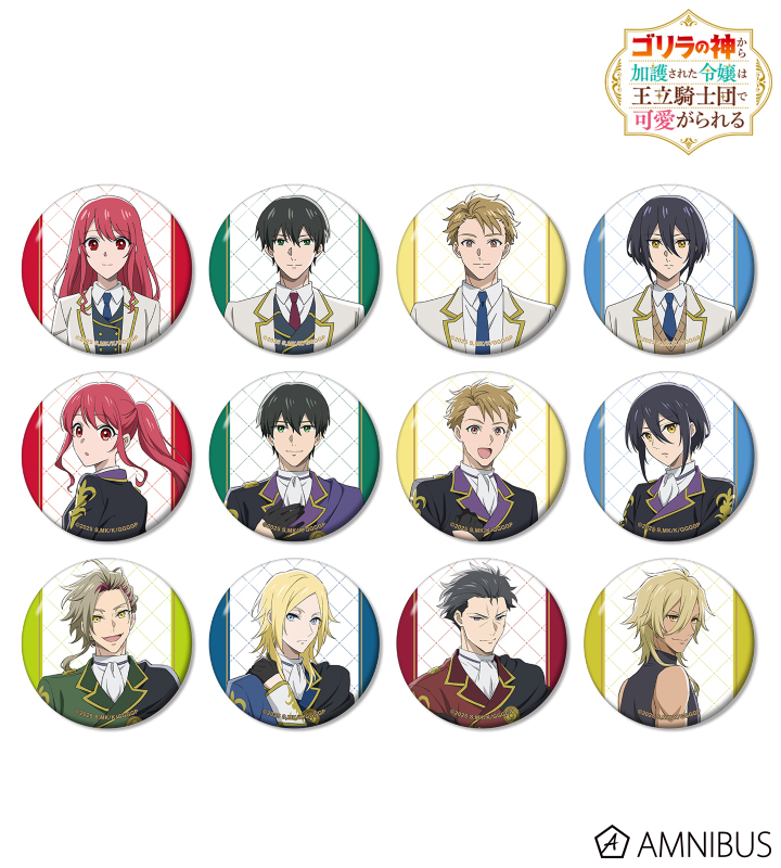 TVアニメ「ゴリラの神から加護された令嬢は王立騎士団で可愛がられる」より、トレーディング缶バッジの登場です。