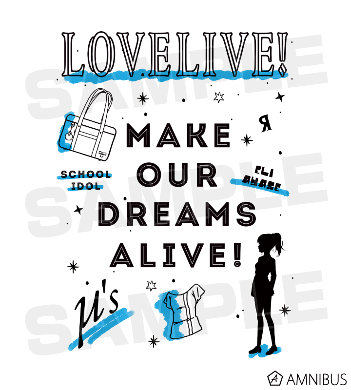 絵里のシルエットや練習着、学校カバンなどのモチーフと、メンバーからイメージしたカラーリングを織り交ぜたデザインに仕上げました。