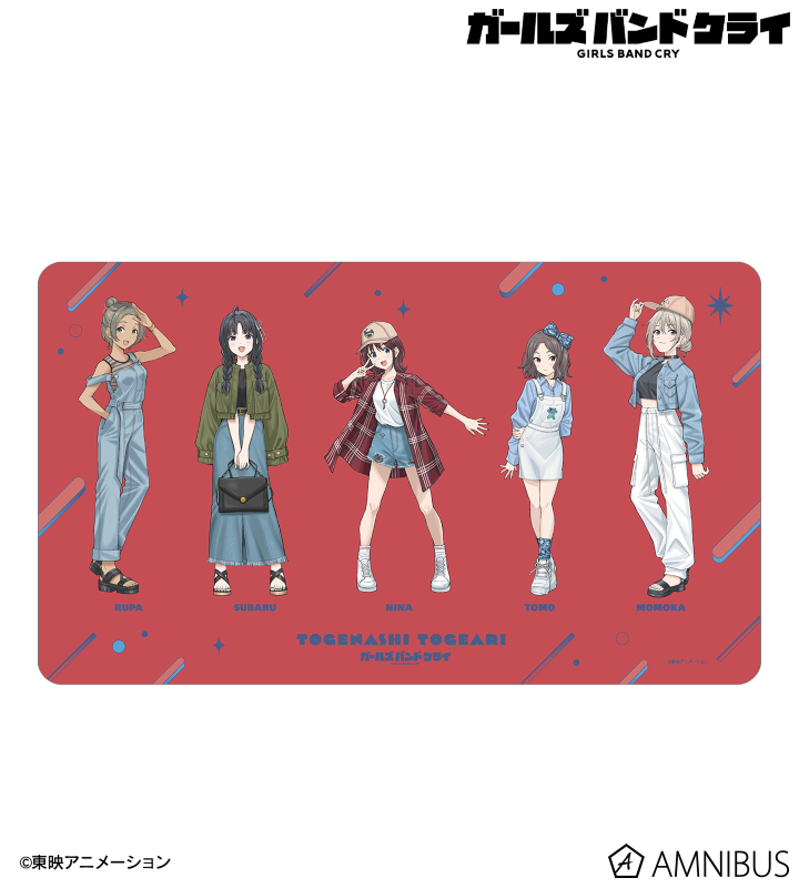 『ガールズバンドクライ』×「カラオケの鉄人」のコラボレーションアイテム「描き下ろし トゲナシトゲアリ 集合 私服ver. マルチデスクマット」の登場です。