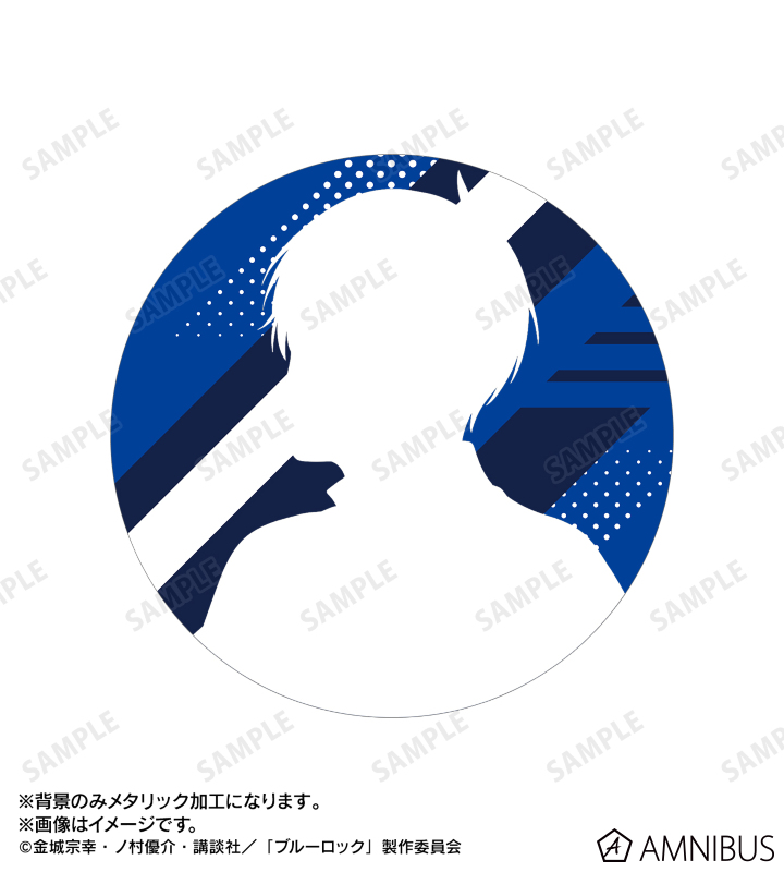 潔 世一、糸師 凛、凪 誠士郎、雪宮 剣優、乙夜 影汰、烏 旅人、蜂楽 廻、千切 豹馬、御影 玲王、氷織 羊の描き下ろしイラストをメタリック仕様の缶バッジに仕上げました。