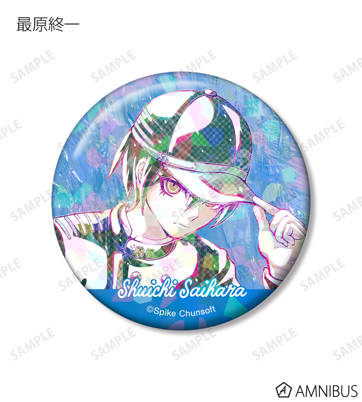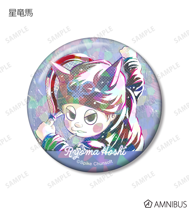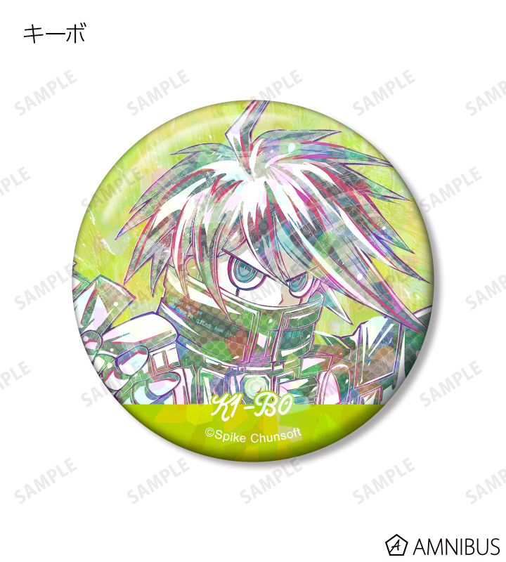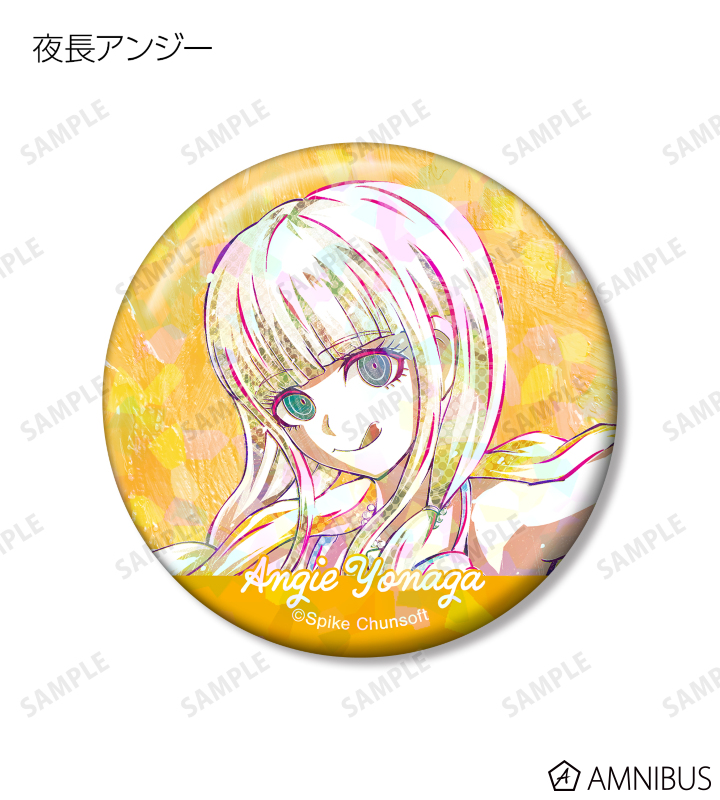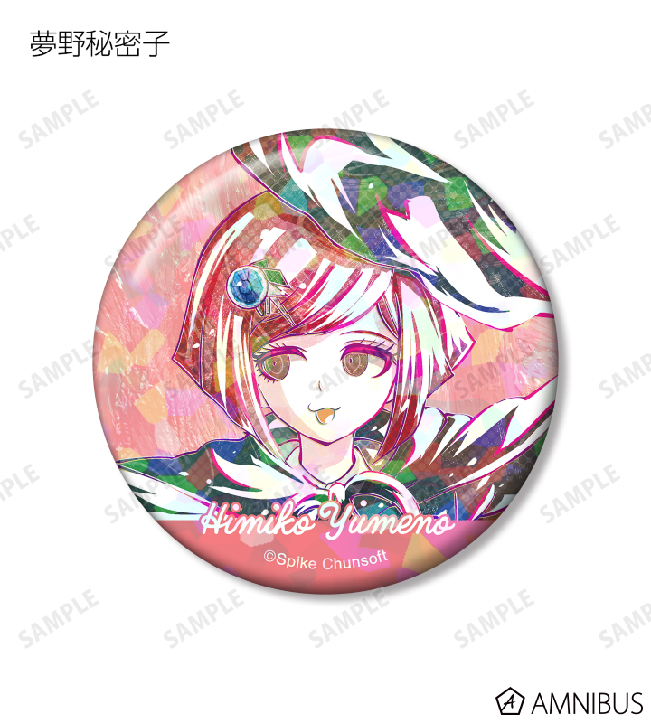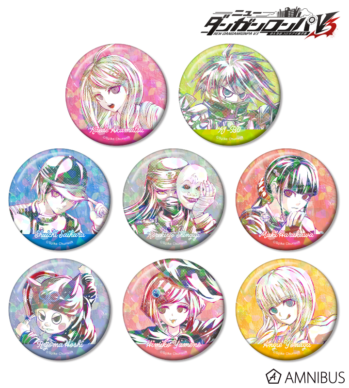 赤松楓、キーボ、最原終一、真宮寺是清、春川魔姫、星竜馬、夢野秘密子、夜長アンジーのイラストを新たなタッチで魅力的に表現し、ホログラム加工を施した缶バッジに仕上げました。