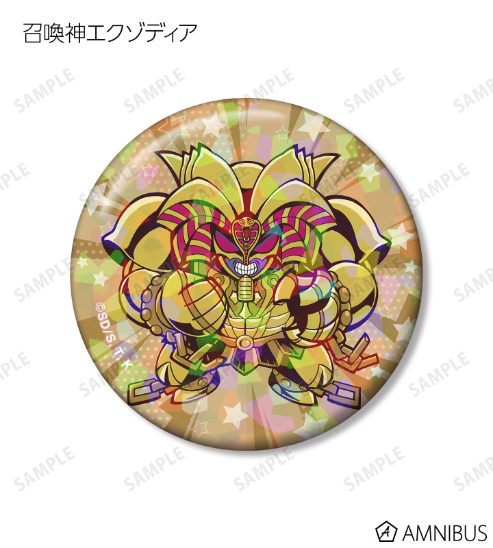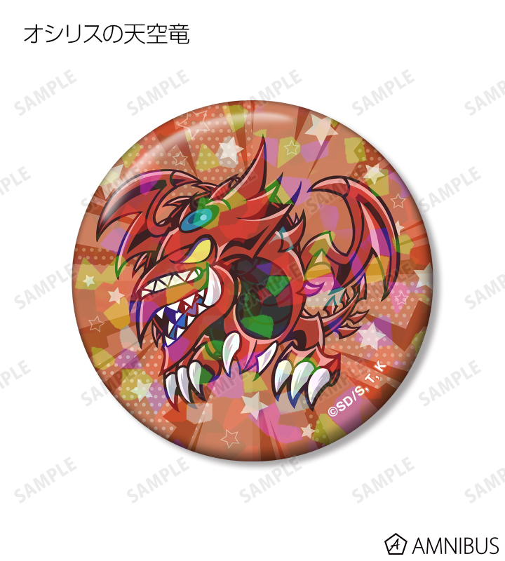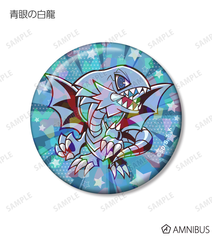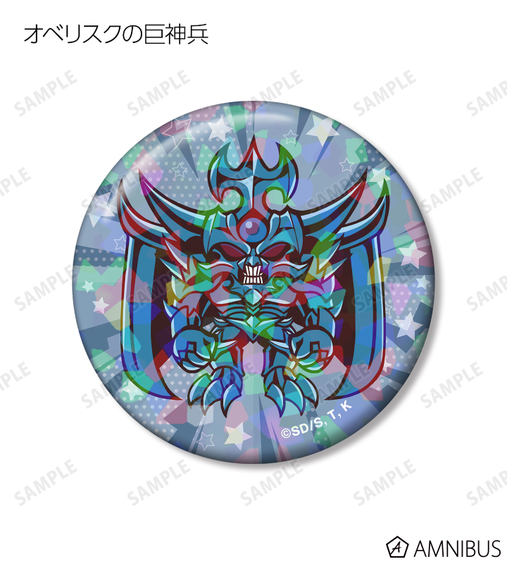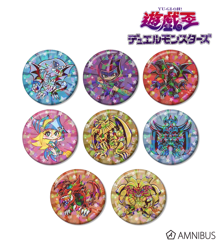青眼の白龍、ブラック・マジシャン、真紅眼の黒竜、ブラック・マジシャン・ガール、ラーの翼神竜、オベリスクの巨神兵、オシリスの天空竜、召喚神エクゾディアのイラストをトゥーンモンスターになったイメージで描き起こし、ホログラム加工を施した缶バッジに仕上げました。