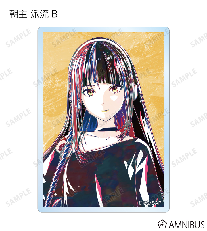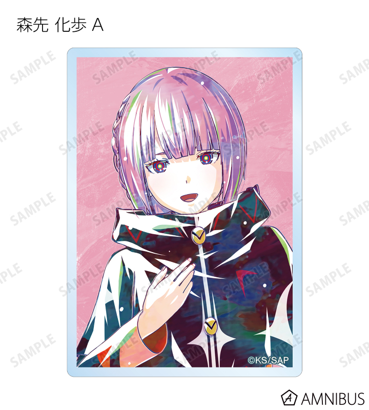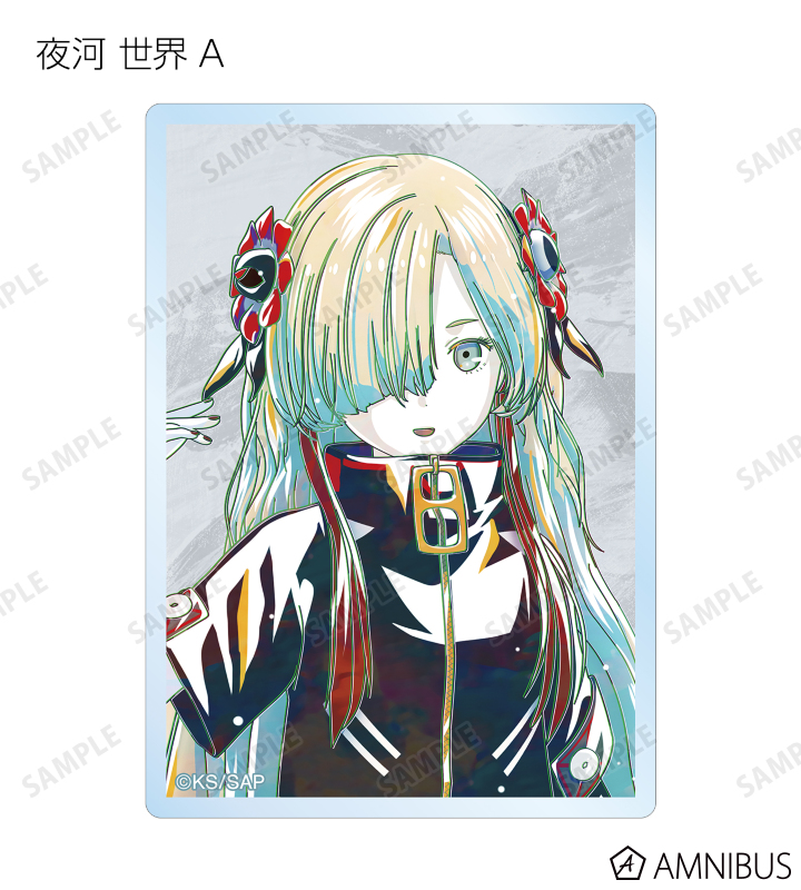 森先 化歩、谷置 狸眼、朝主 派流、夜河 世界、輪廻 此処のイラストを新たなタッチで魅力的に表現し、アクリルカードに仕上げました。