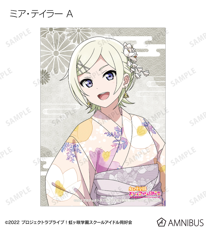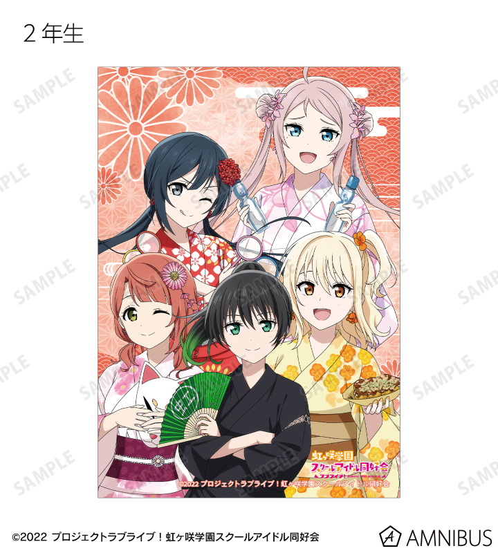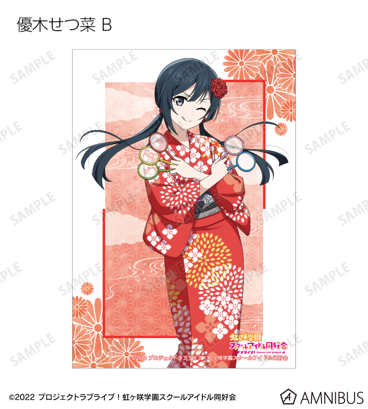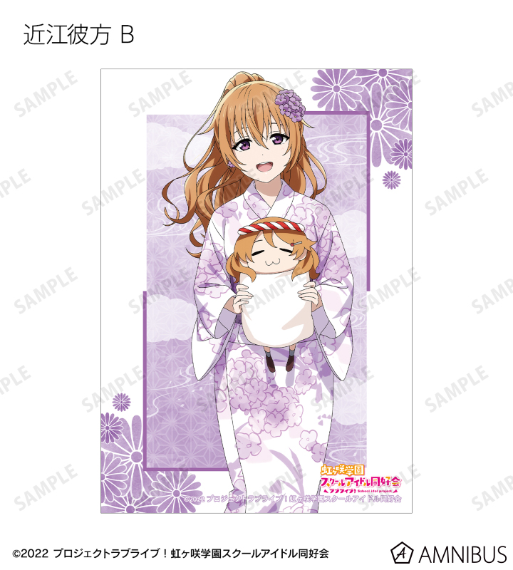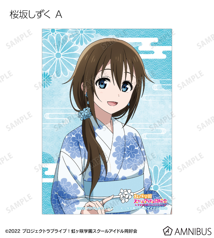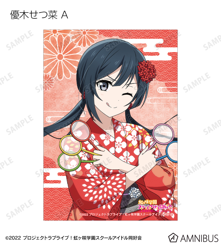 高咲 侑、上原歩夢、中須かすみ、桜坂しずく、朝香果林、宮下 愛、近江彼方、優木せつ菜、エマ・ヴェルデ、天王寺璃奈、三船栞子、ミア・テイラー、鐘 嵐珠の描き下ろしイラストをブロマイドに仕上げました。