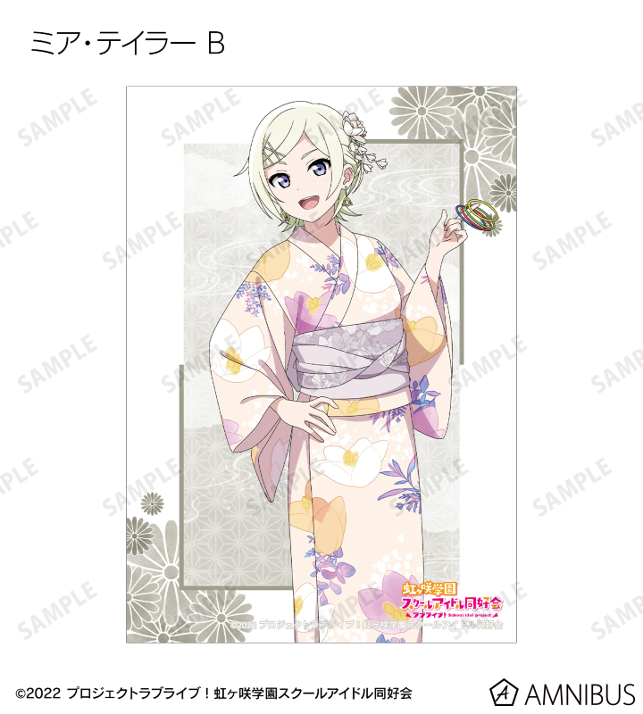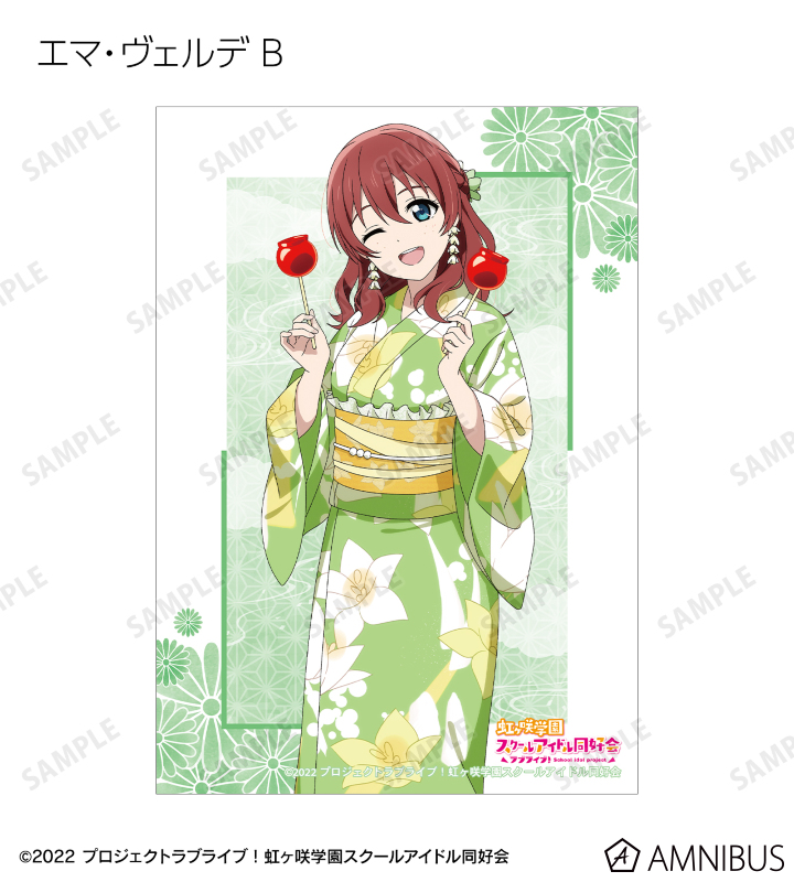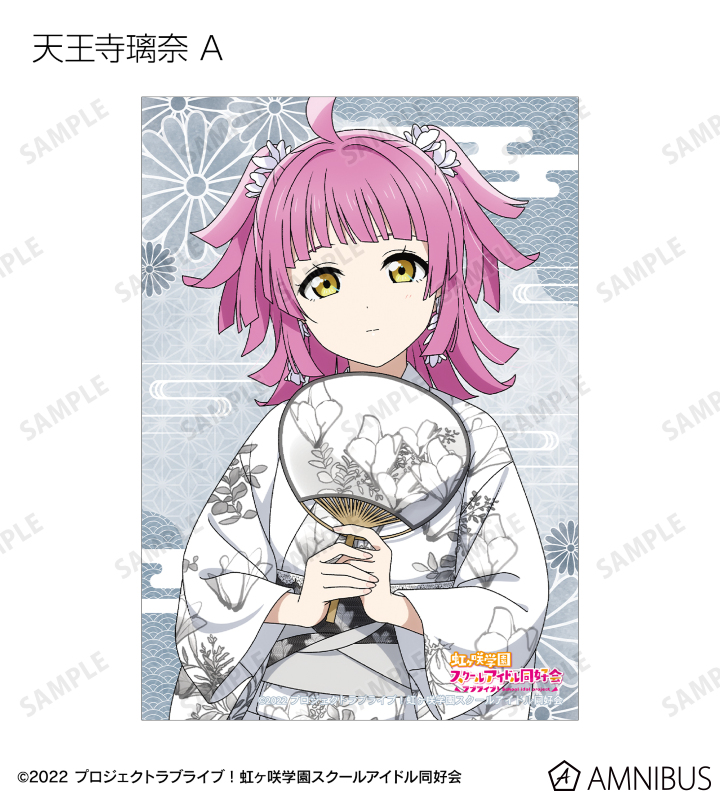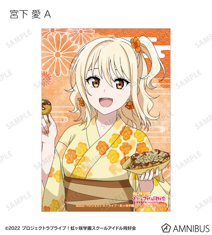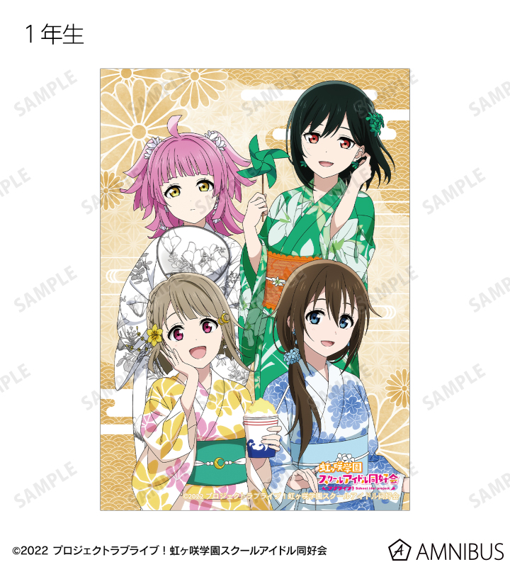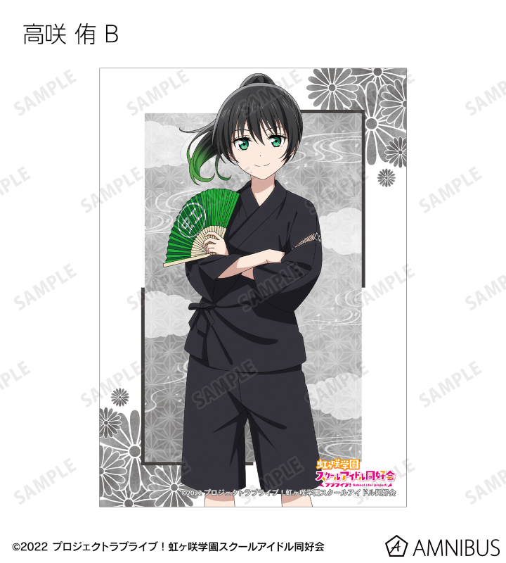 高咲 侑、上原歩夢、中須かすみ、桜坂しずく、朝香果林、宮下 愛、近江彼方、優木せつ菜、エマ・ヴェルデ、天王寺璃奈、三船栞子、ミア・テイラー、鐘 嵐珠の描き下ろしイラストをブロマイドに仕上げました。