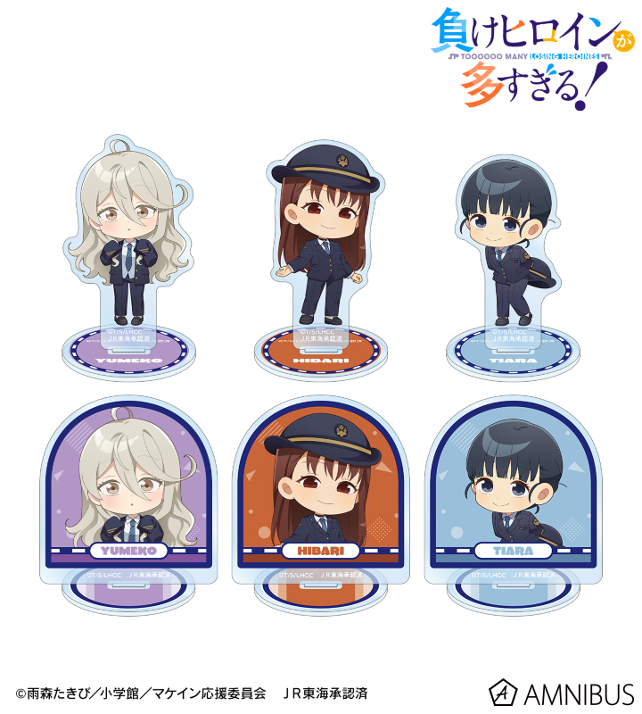 TVアニメ『負けヒロインが多すぎる!』×「推し旅/JR東海」のコラボレーションアイテム「トレーディング ちびキャラ 駅員ver. 第2弾 アクリルスタンド」の登場です。