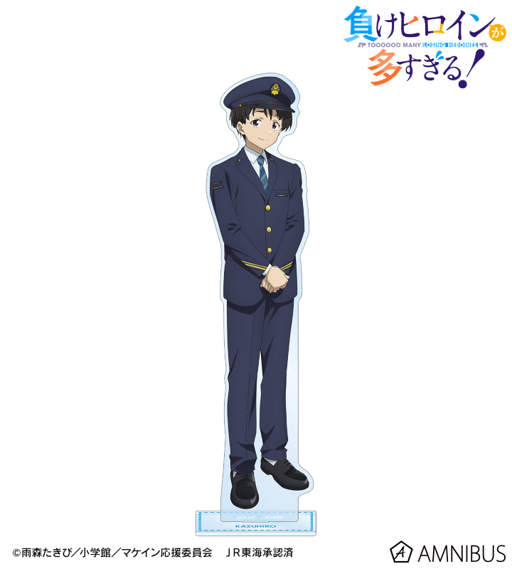 TVアニメ『負けヒロインが多すぎる!』×「推し旅/JR東海」のコラボレーションアイテム「描き下ろし 温水 和彦 駅員ver. 第2弾 特大アクリルスタンド」の登場です。