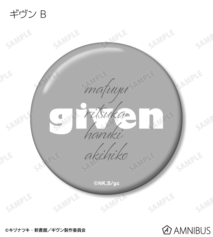 『映画 ギヴン 海へ』から日常で使える統一感をテーマにしたデザインシリーズ「ar-Unity」のアイテム「ギヴン ar-Unity 缶バッジ2個セット」の登場です。