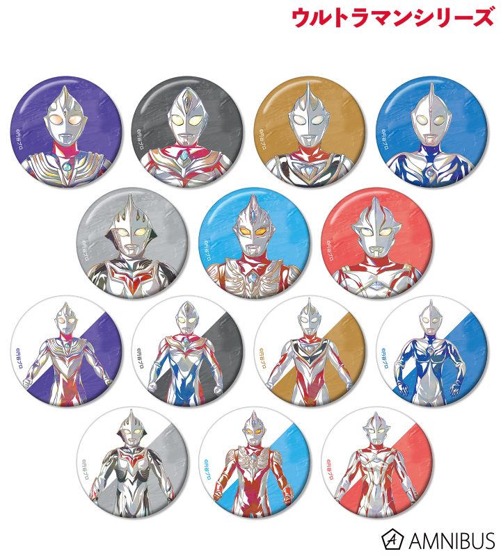 ウルトラマンティガ、ウルトラマンダイナ、ウルトラマンガイア、ウルトラマンコスモス、ウルトラマンネクサス、ウルトラマンマックス、ウルトラマンメビウスを新たなタッチで魅力的に表現し、缶バッジに仕上げました。