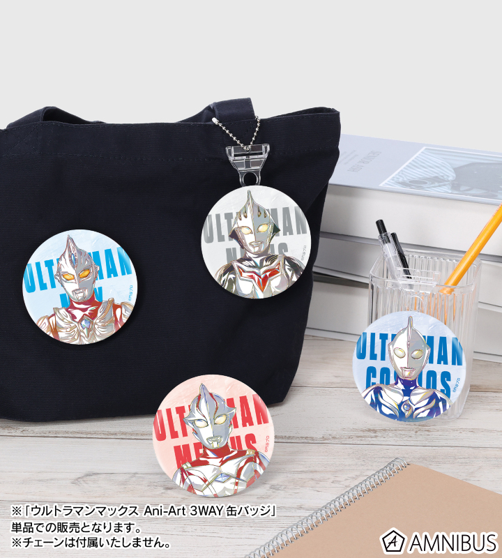 ウルトラマンマックスを新たなタッチで魅力的に表現し、3WAY缶バッジに仕上げました。