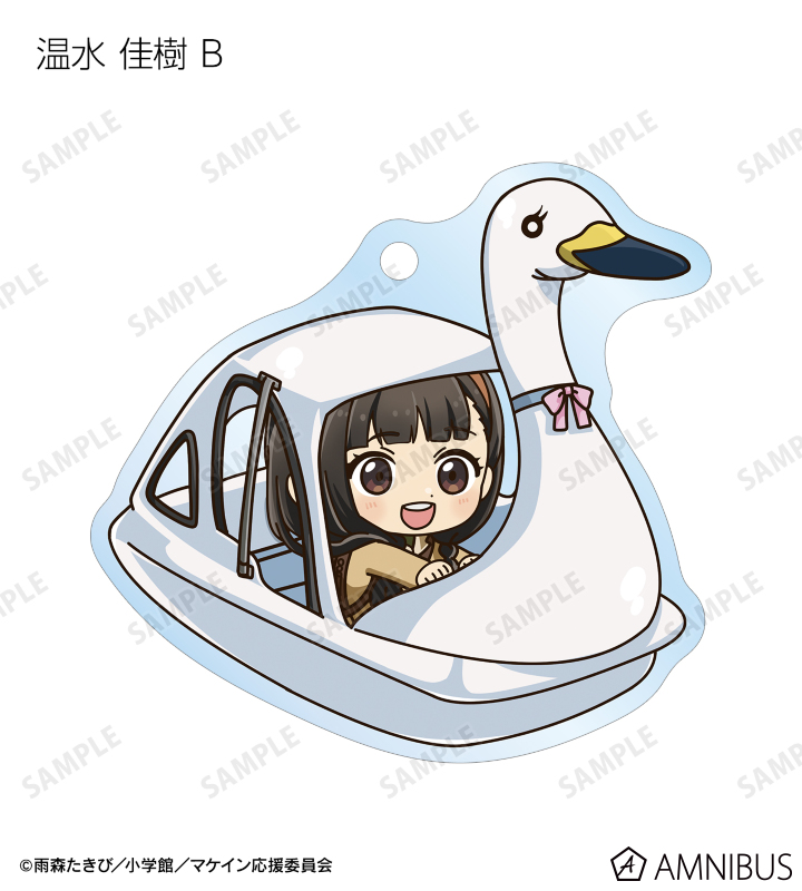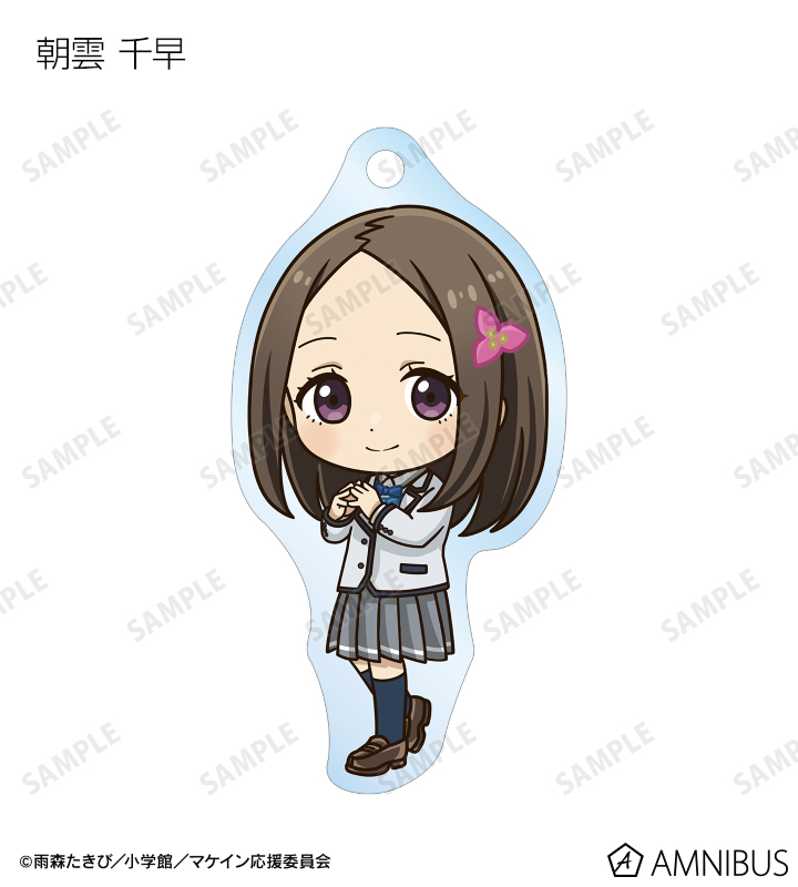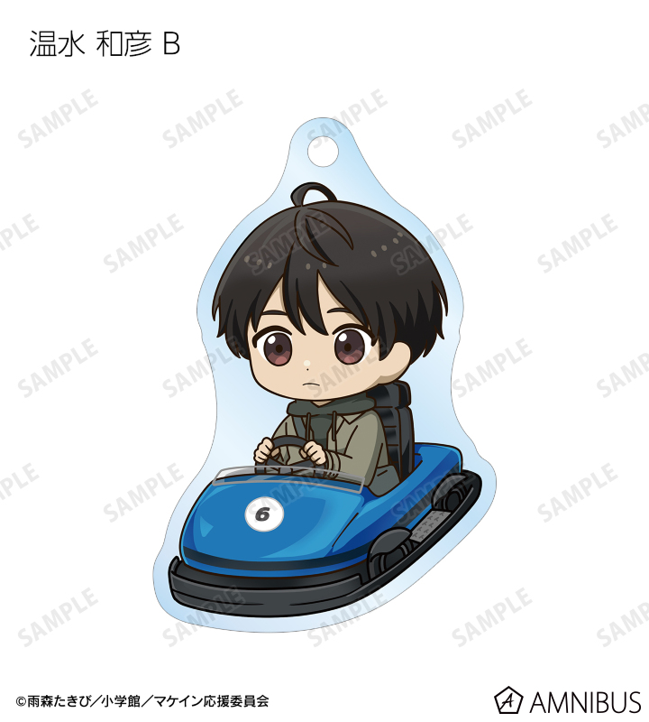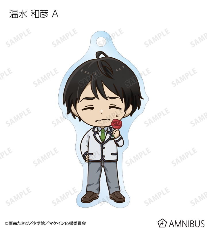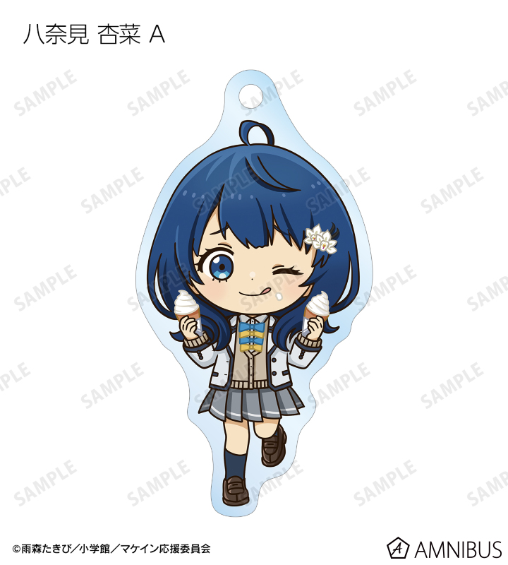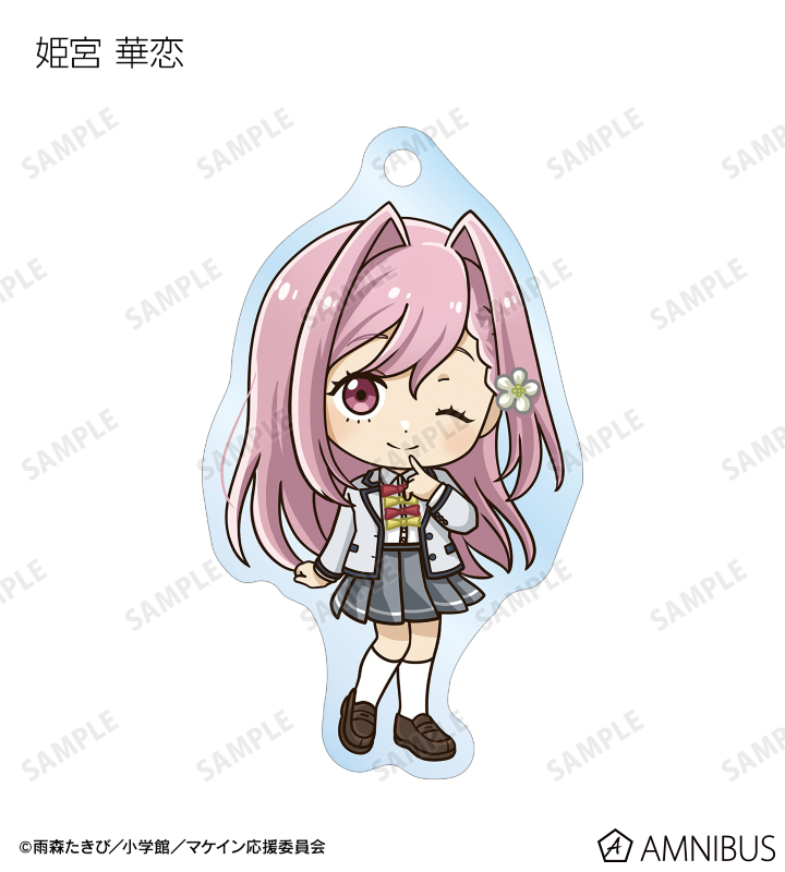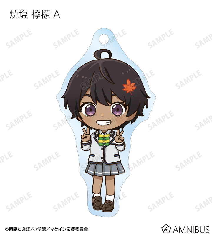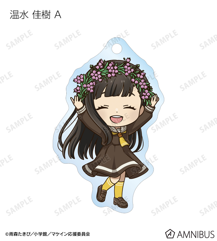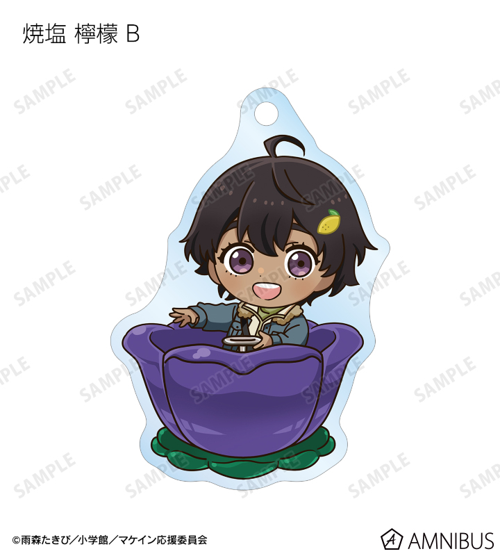 温水 和彦、八奈見 杏菜、焼塩 檸檬、小鞠 知花、温水 佳樹、月之木 古都、姫宮 華恋、朝雲 千早、志喜屋 夢子、放虎原 ひばり、馬剃 天愛星の描き起こしちびキャライラストをメインにデザインし、アクリルキーホルダーに仕上げました。