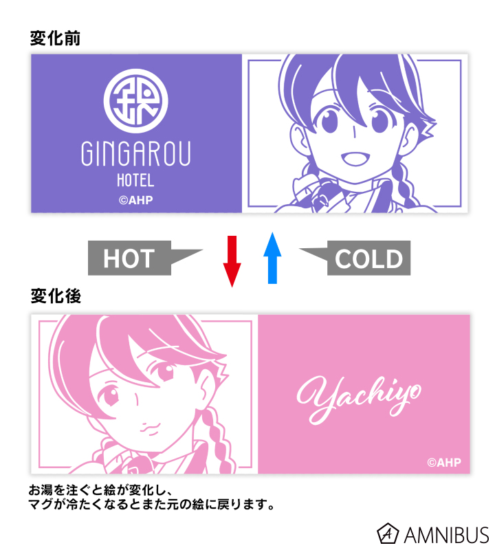 ヤチヨの描き起こしイラストとホテルロゴ、グラマラスver.をチェンジングマグカップに仕上げました。