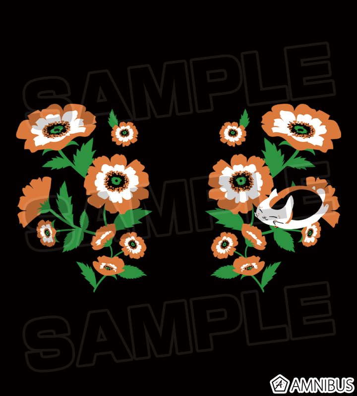オレンジ色の花の中にニャンコ先生がさりげなく紛れ込んでいるデザインに仕上げました。