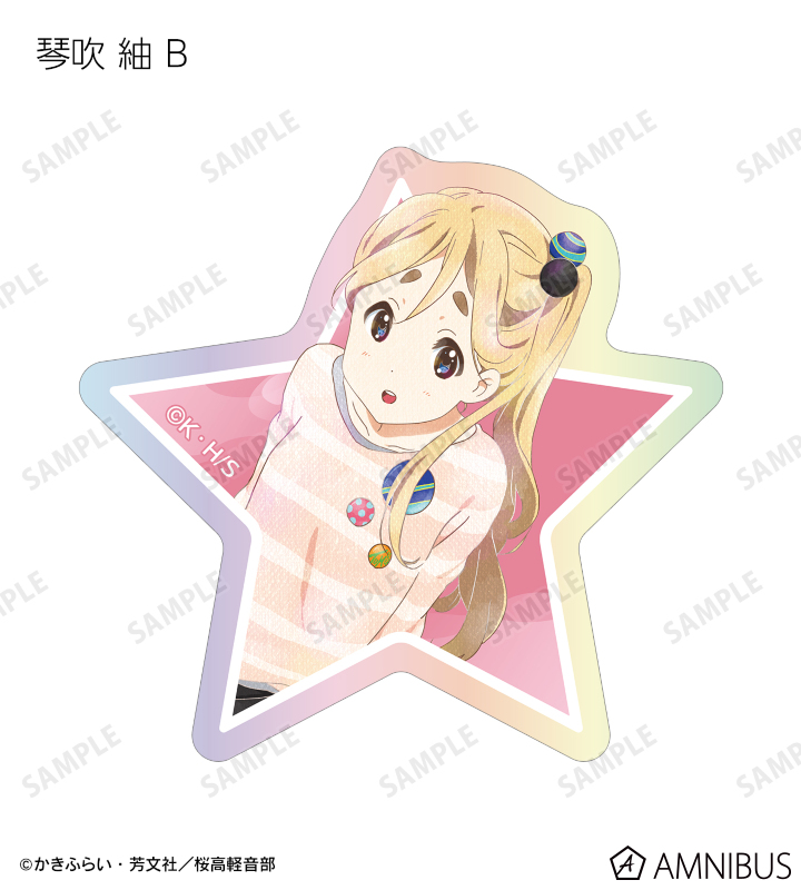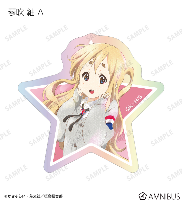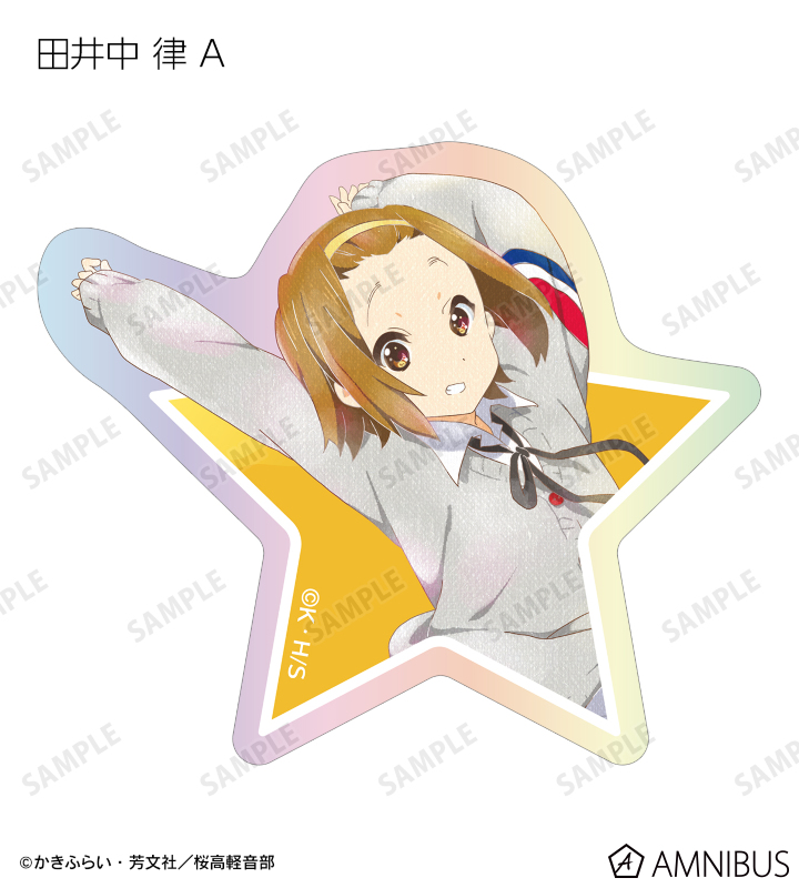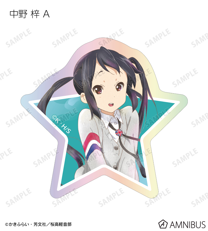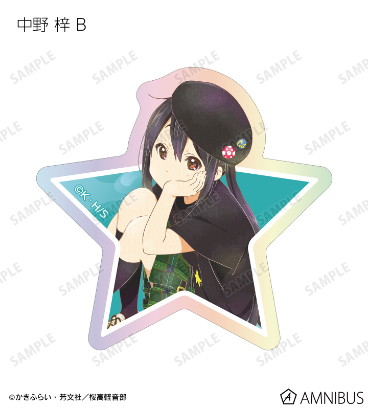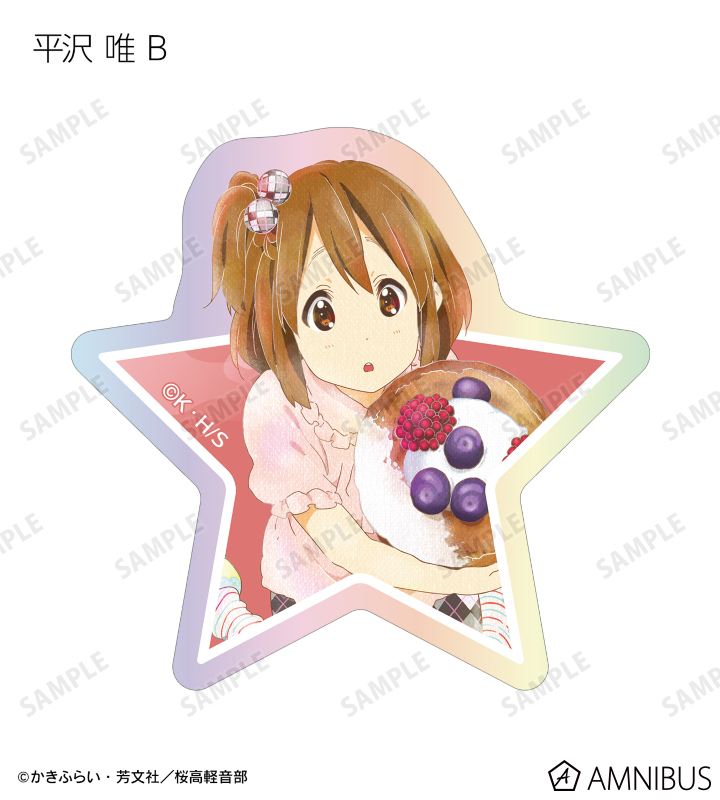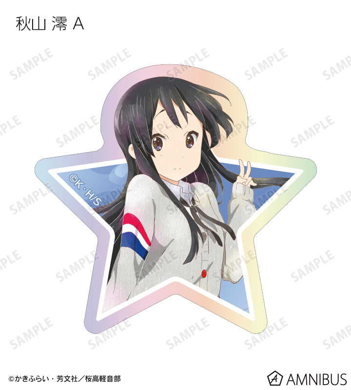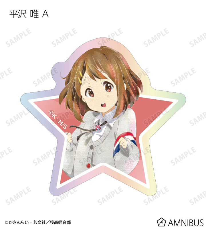 平沢 唯、秋山 澪、田井中 律、琴吹 紬、中野 梓のイラストを新たなタッチで魅力的に表現し、オーロラステッカーに仕上げました。