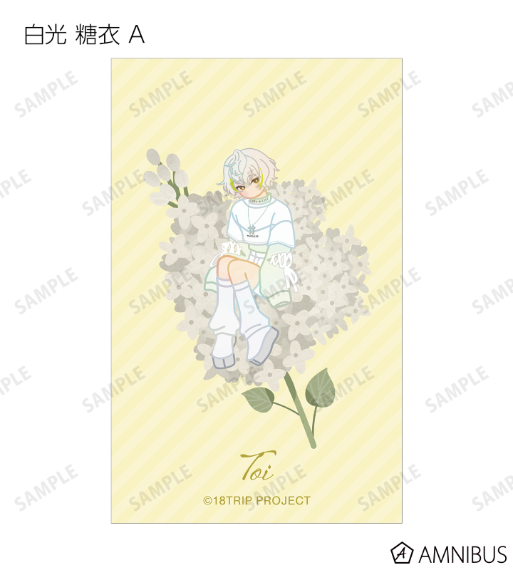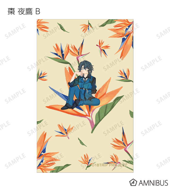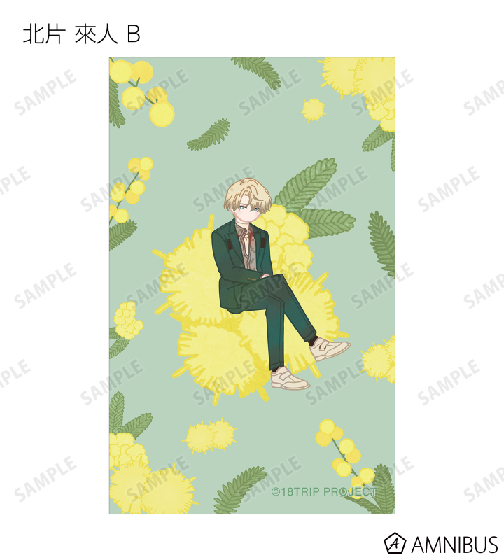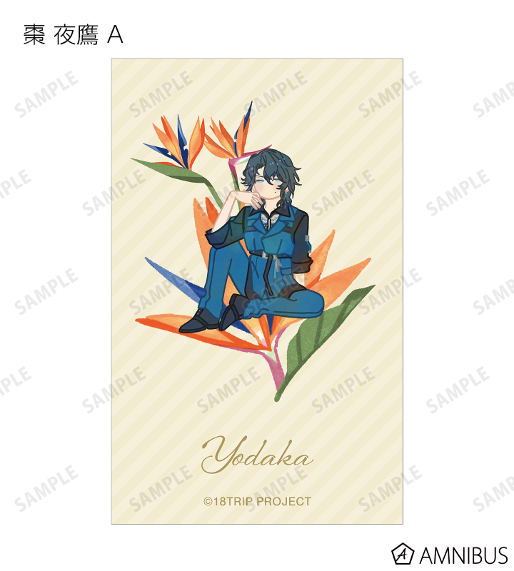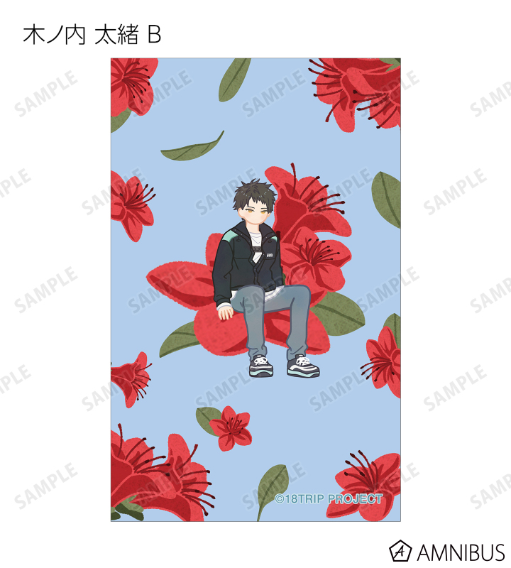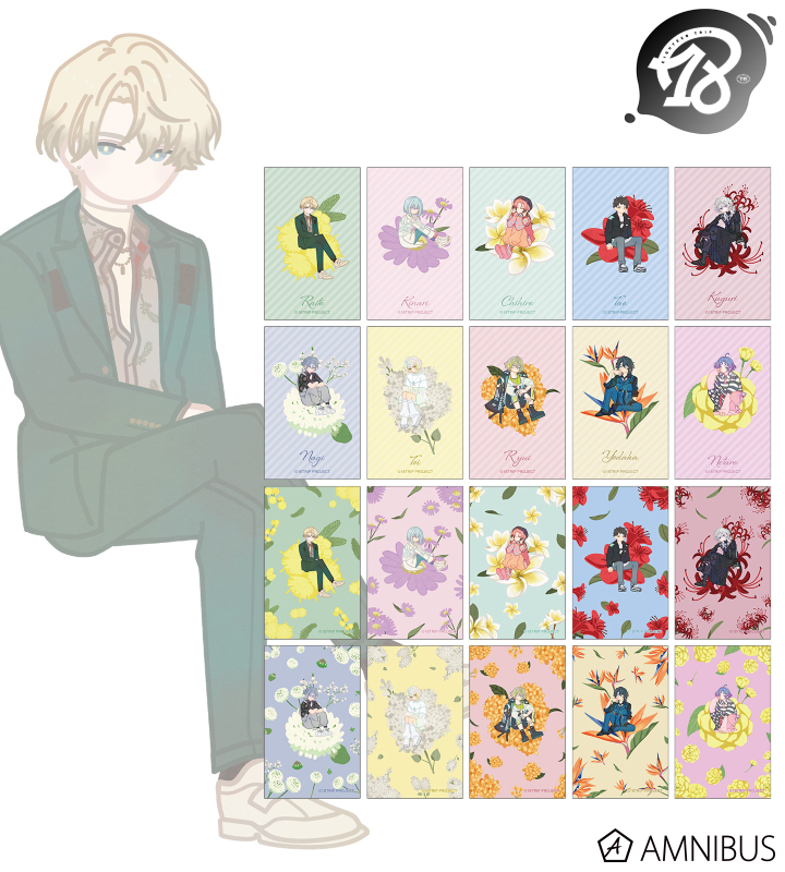 北片 來人、畔川 幾成、夏焼 千弥、木ノ内 太緒、百目鬼 潜、蜂乃屋 凪、白光 糖衣、白光 琉衣、棗 夜鷹、夜半 子タろのイラストをボタニカルデザインに落とし込んで繊細なタッチで新たに描き起こし、イラストカードに仕上げました。