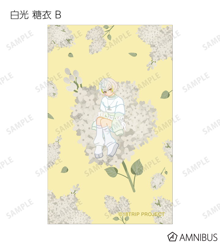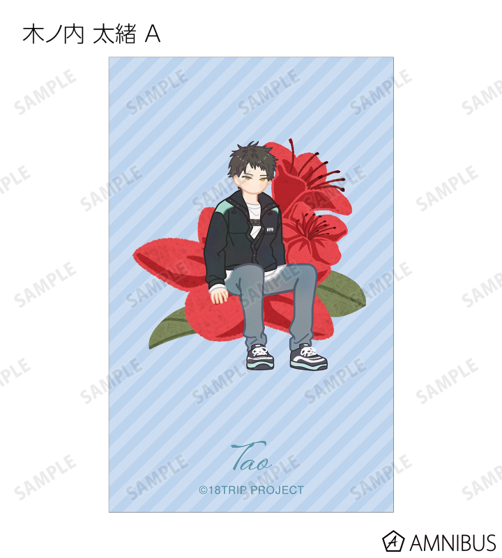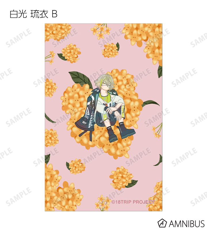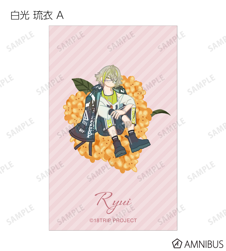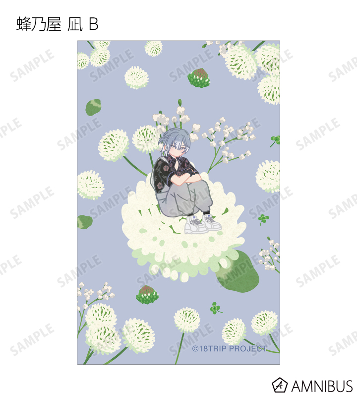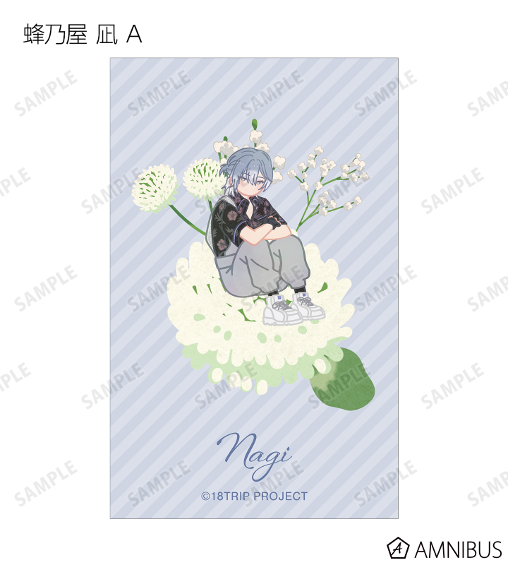 北片 來人、畔川 幾成、夏焼 千弥、木ノ内 太緒、百目鬼 潜、蜂乃屋 凪、白光 糖衣、白光 琉衣、棗 夜鷹、夜半 子タろのイラストをボタニカルデザインに落とし込んで繊細なタッチで新たに描き起こし、イラストカードに仕上げました。