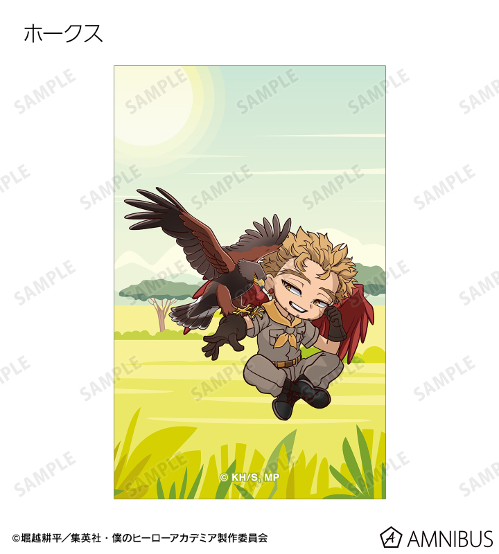 緑谷出久、爆豪勝己、麗日お茶子、轟焦凍、蛙吹梅雨、切島鋭児郎、上鳴電気、耳郎響香、心操人使、オールマイト、相澤消太、エンデヴァー、ホークス、死柄木弔、荼毘、トガヒミコの描き起こしちびキャラビジュアルをメインにデザインし、ビジュアルカードに仕上げました。