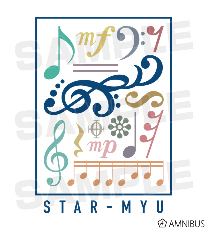 スタミュのマークとメンバーからイメージしたカラーリングで仕上げた音楽記号を散りばめ、カラフルなデザインに仕上げました。
