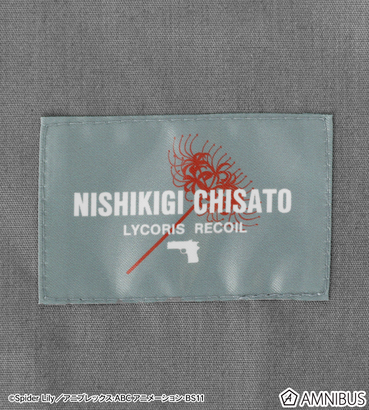 袖部分には、錦木千束をイメージしたカラーのアームクリップをアクセントとして取り付け、胸元にはリコリスの校章を刺繍で再現しました。
