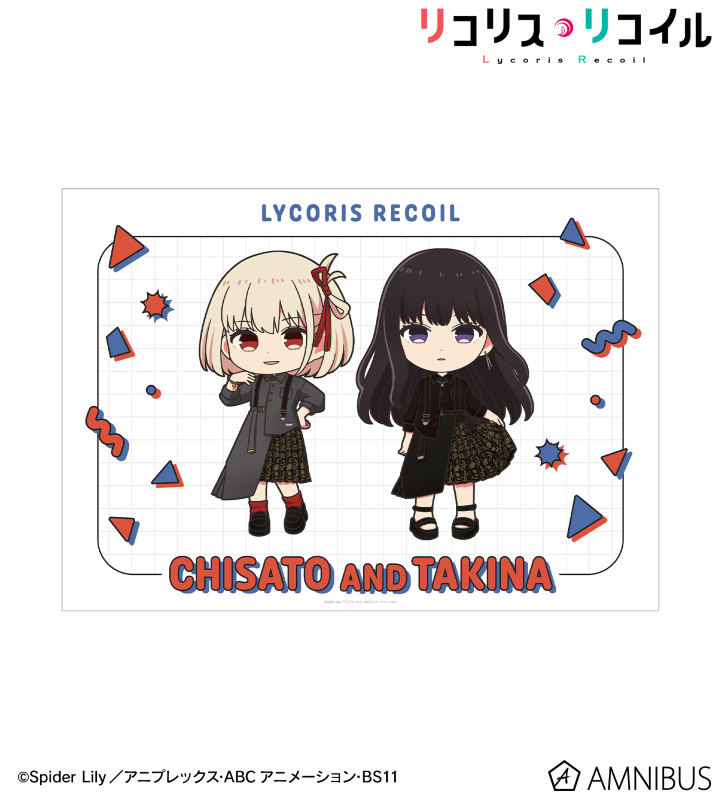 TVアニメ「リコリス・リコイル」×「meagratia」のコラボレーションアイテム「meagratiaコラボ 錦木千束&井ノ上たきな ちびキャラ A3マット加工ポスター ver.A」の登場です。