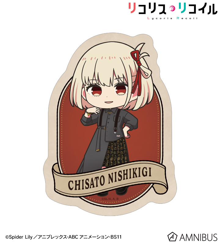 TVアニメ「リコリス・リコイル」×「meagratia」のコラボレーションアイテム「meagratiaコラボ 錦木千束 ちびキャラ ダイカットステッカー ver.A」の登場です。