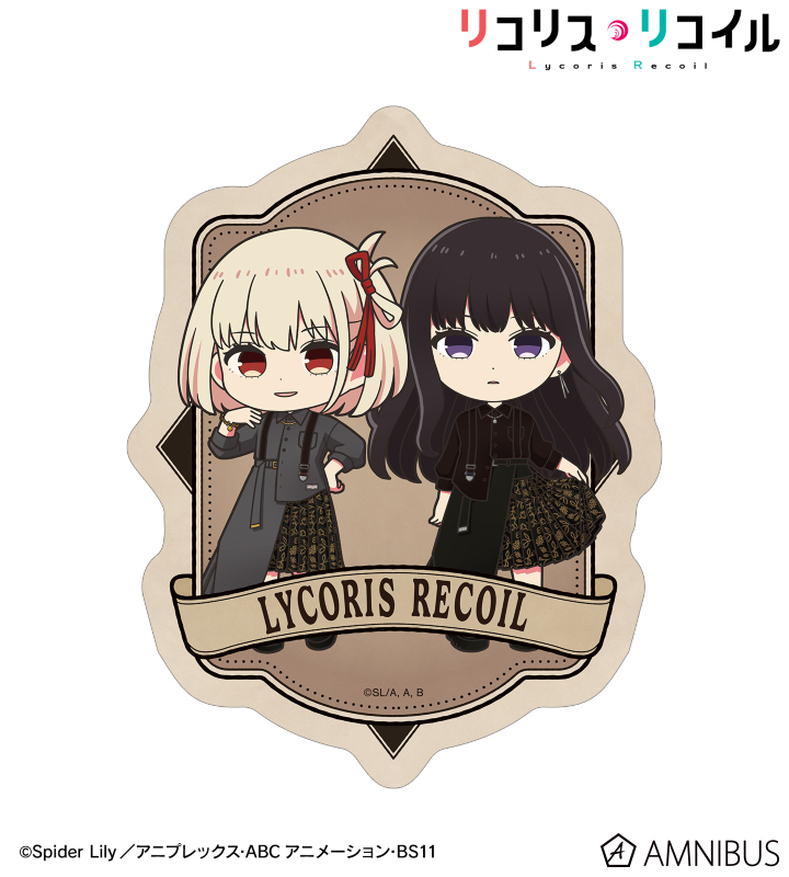 TVアニメ「リコリス・リコイル」×「meagratia」のコラボレーションアイテム「meagratiaコラボ 錦木千束&井ノ上たきな ちびキャラ ダイカットステッカー ver.A」の登場です。