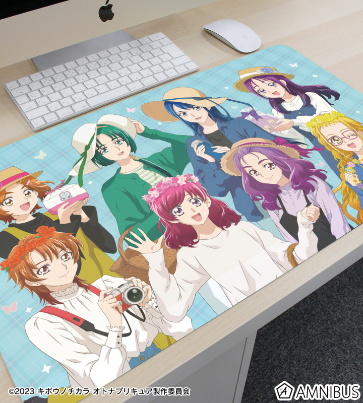 夢原 のぞみ、夏木 りん、春日野 うらら、秋元 こまち、水無月 かれん、美々野 くるみ、日向 咲、美翔 舞の描き下ろしイラストをマルチデスクマットに仕上げました。