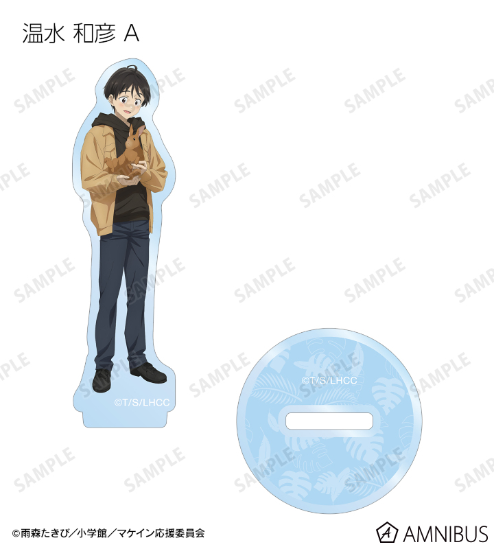 温水 和彦、八奈見 杏菜、焼塩 檸檬、小鞠 知花、温水 佳樹の描き下ろしイラストをアクリルスタンドに仕上げました。