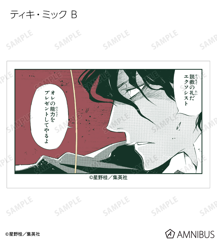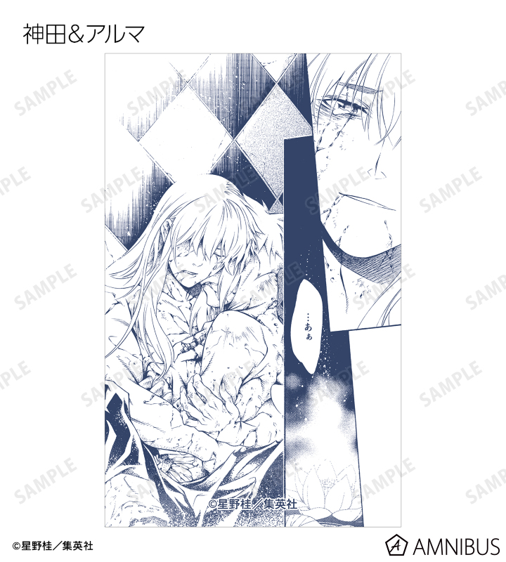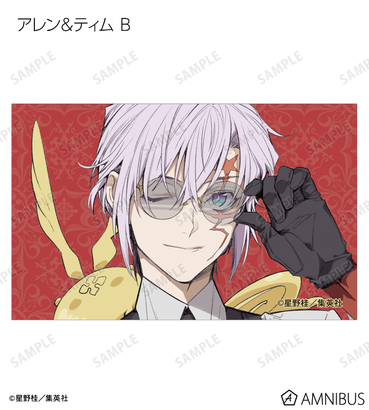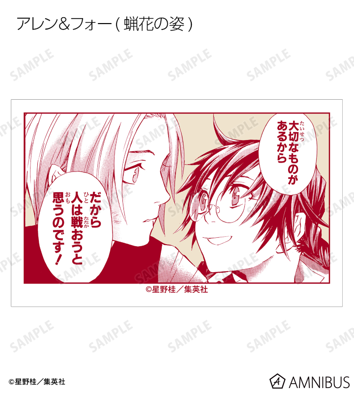 アレン・ウォーカー、ティムキャンピー、フォー(蝋花の姿)、コムリン、神田ユウ、アルマ、ラビ、ブックマン、リナリー・リー、アレイスター・クロウリー三世、ミランダ・ロットー、ノイズ・マリ、クロス・マリアン、聖母ノ柩、コムイ・リー、科学班、ハワード・リンク、ロード・キャメロット、ティキ・ミック、ジャスデビ、ゴーレムの原作コマ、カラーイラストをイラストカードに仕上げました。