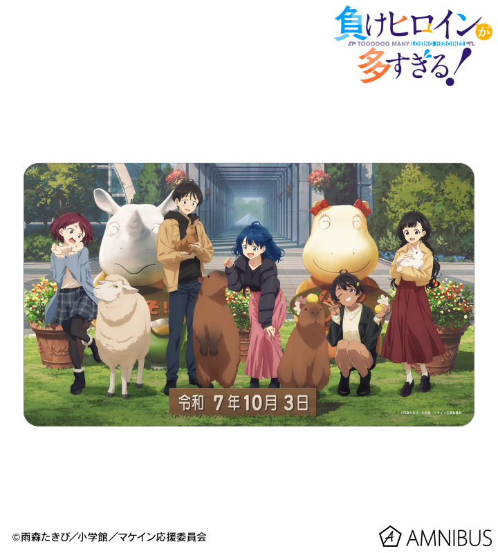 TVアニメ『負けヒロインが多すぎる!』×「のんほいパーク(豊橋総合動植物公園)」のコラボレーションアイテム「描き下ろし 集合 動物とのふれあいver. マルチデスクマット」の登場です。