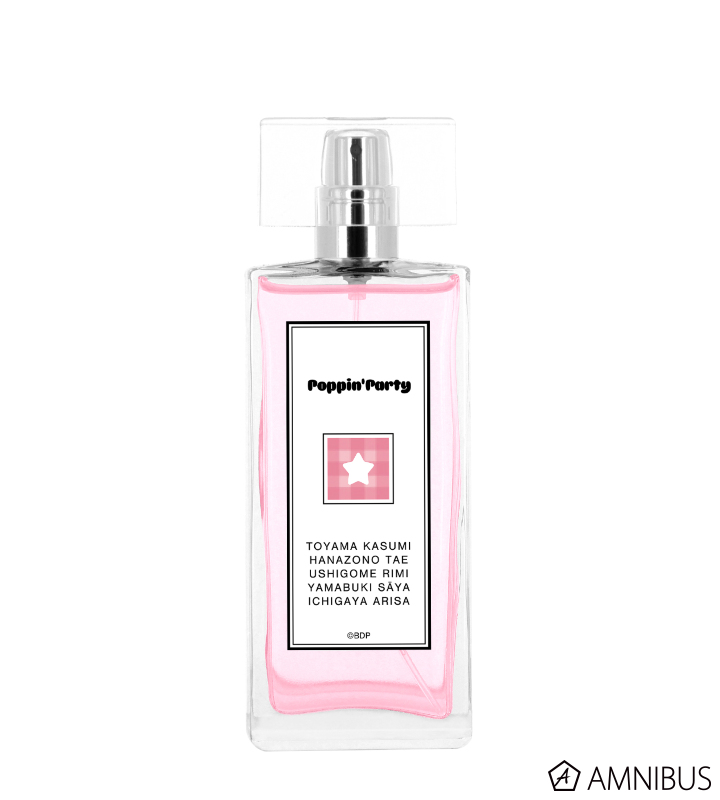 Poppin'Partyをイメージした香水で、香水としてはもちろん、ルームフレグランスやお部屋に飾ってインテリアとしてもお使いいただけるアイテムです。