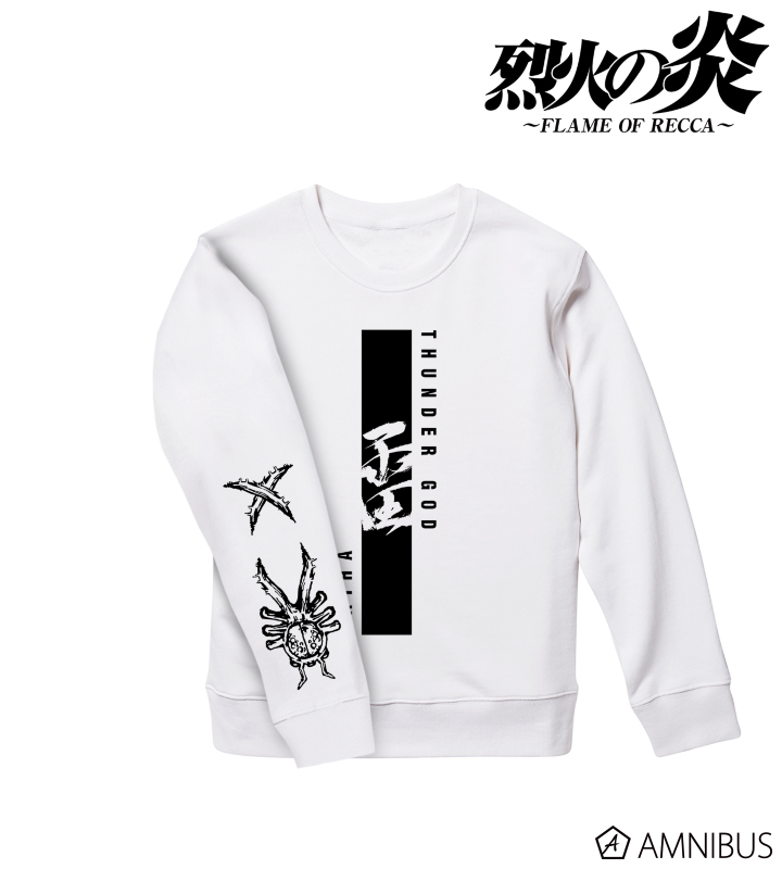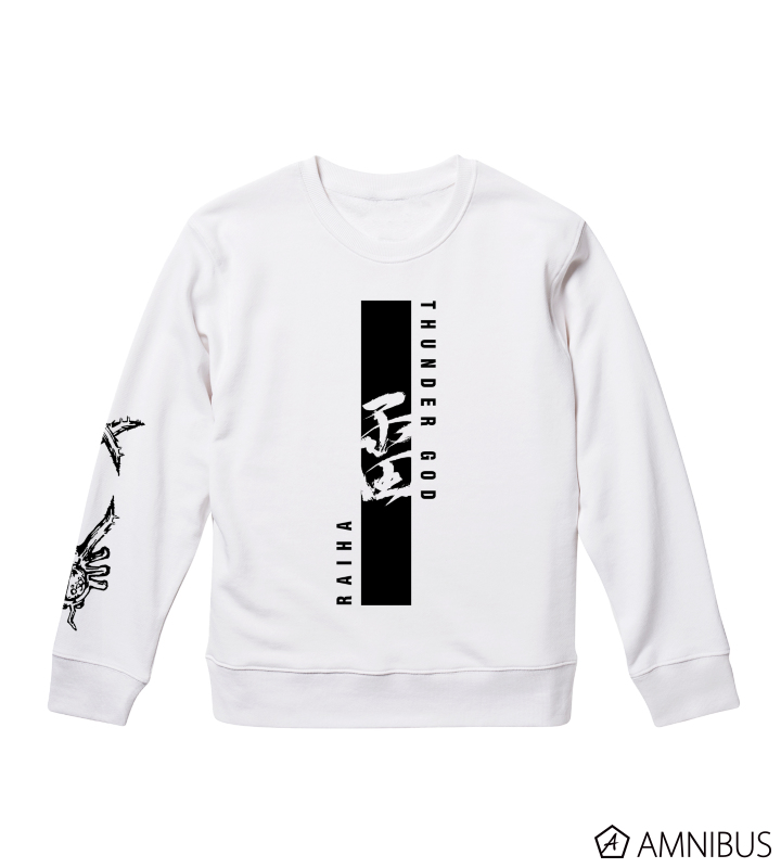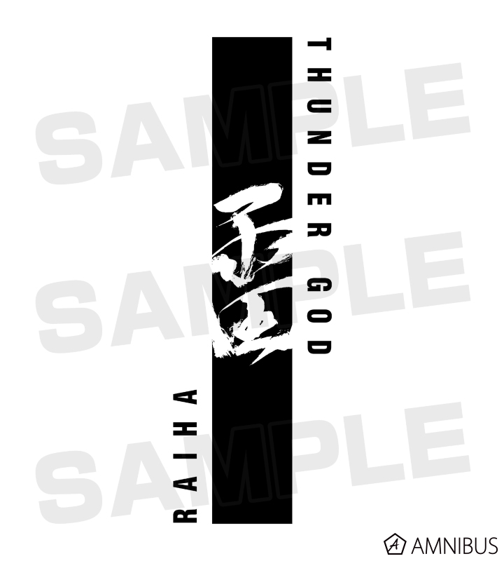 雷覇の魔道具「雷神」を右袖にプリントし、フロントには「雷」の文字、名前と雷神の英字をレイアウトしました。
