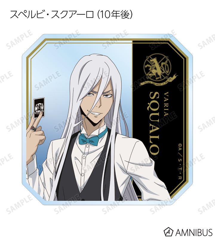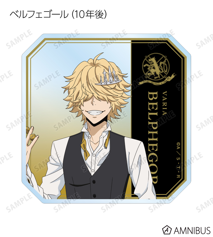 沢田 綱吉、リボーン、雲雀 恭弥、六道 骸(10年後)、XANXUS (10年後)、スペルビ・スクアーロ(10年後)、ベルフェゴール(10年後)、フランの描き下ろしイラストをアクリルコースターに仕上げました。