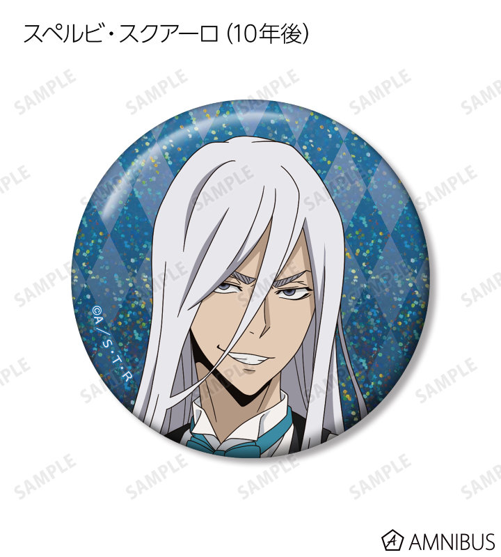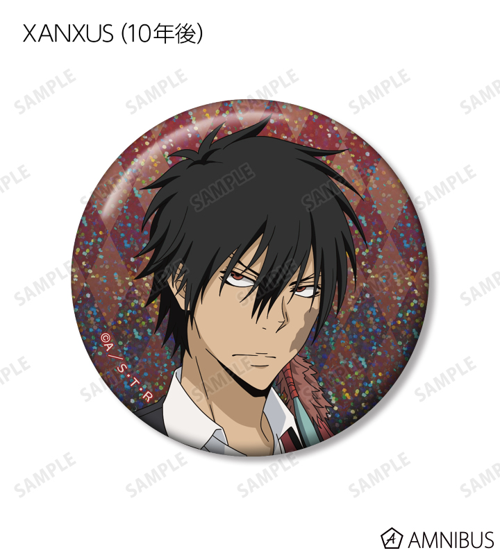 沢田 綱吉、リボーン、雲雀 恭弥、六道 骸(10年後)、XANXUS (10年後)、スペルビ・スクアーロ(10年後)、ベルフェゴール(10年後)、フランの描き下ろしイラストをホログラム加工を施した缶バッジに仕上げました。