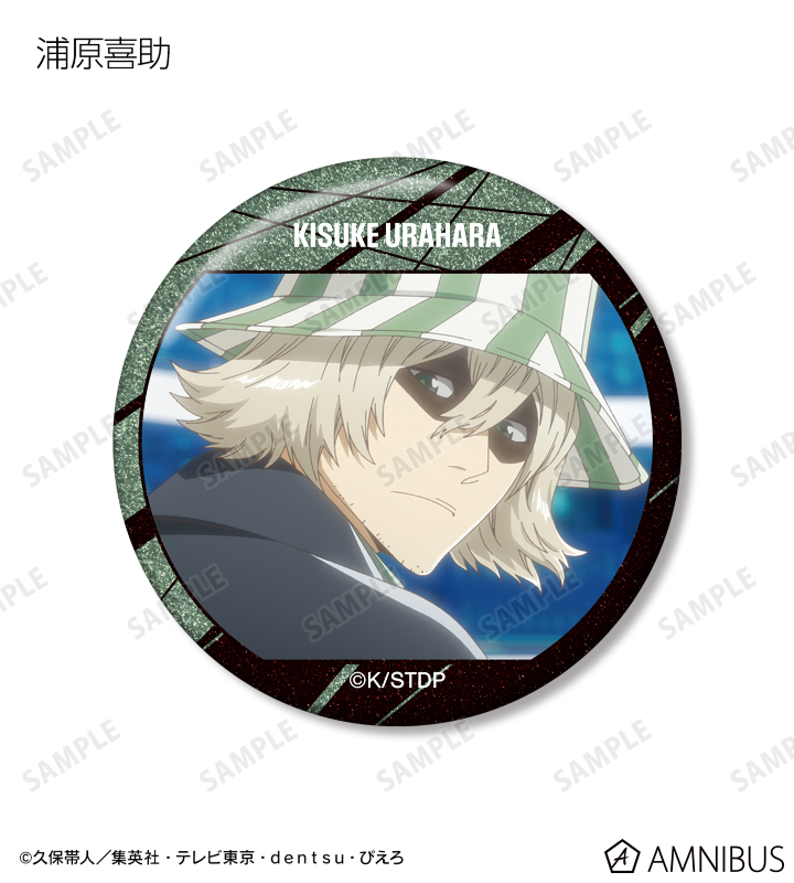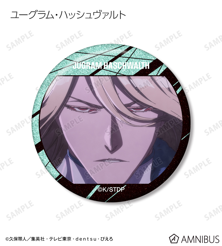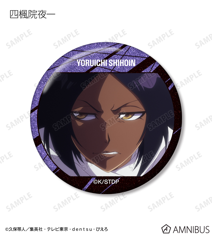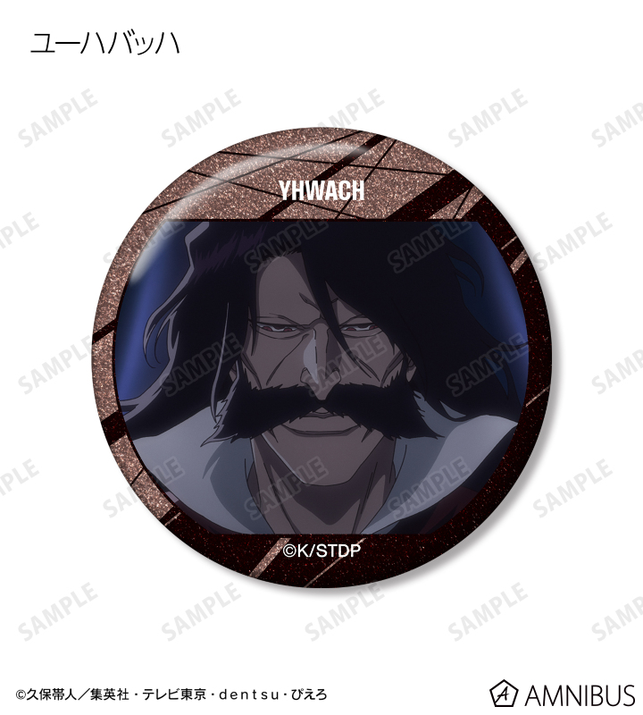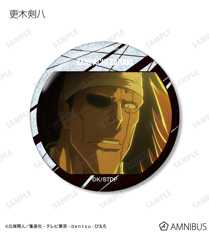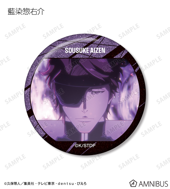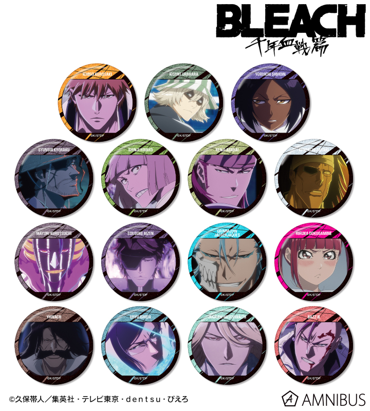 黒崎一護、浦原喜助、四楓院夜一、京楽春水、平子真子、阿散井恋次、更木剣八、涅マユリ、藍染惣右介、グリムジョー・ジャガージャック、毒ヶ峰リルカ、ユーハバッハ、石田雨竜、ユーグラム・ハッシュヴァルト、バズビーの印象的なシーンをグリッター加工を施した缶バッジに仕上げました。