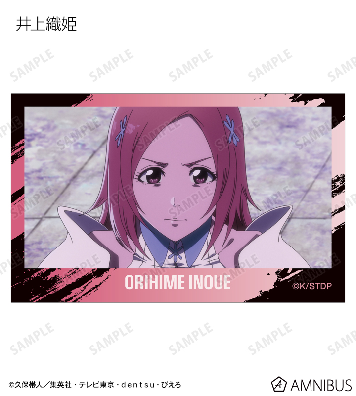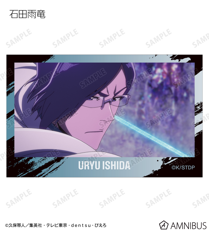 黒崎一護、井上織姫、茶渡泰虎、浦原喜助、四楓院夜一、京楽春水、伊勢七緒、平子真子、阿散井恋次、更木剣八、涅マユリ、藍染惣右介、グリムジョー・ジャガージャック、ザエルアポロ・グランツ、毒ヶ峰リルカ、ユーハバッハ、石田雨竜、ユーグラム・ハッシュヴァルト、アスキン・ナックルヴァール、バズビーの印象的なシーンをイラストカードに仕上げました。