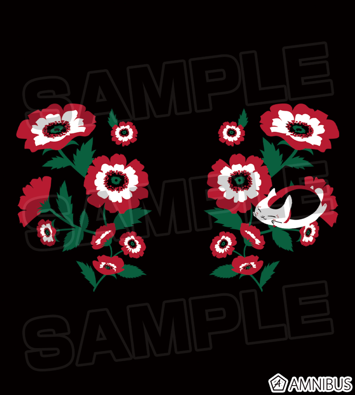 赤い花の中にニャンコ先生がさりげなく紛れ込んでいるデザインに仕上げました。