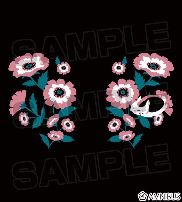 ピンク色の花の中にニャンコ先生がさりげなく紛れ込んでいるデザインに仕上げました。