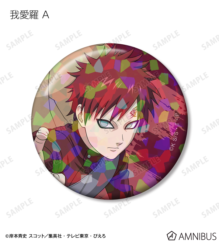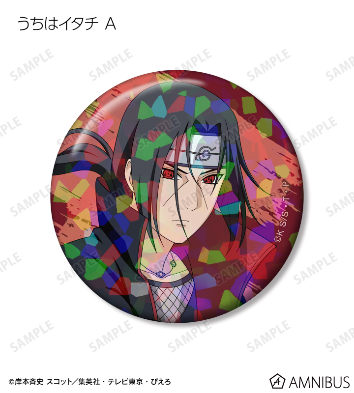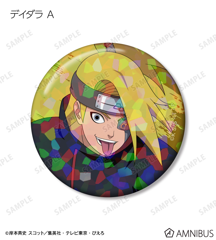 うずまきナルト、うちはサスケ、はたけカカシ、奈良シカマル、我愛羅、うちはイタチ、デイダラ、サソリの描き下ろしイラストをホログラム加工を施した缶バッジに仕上げました。