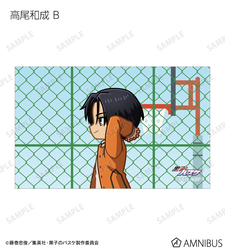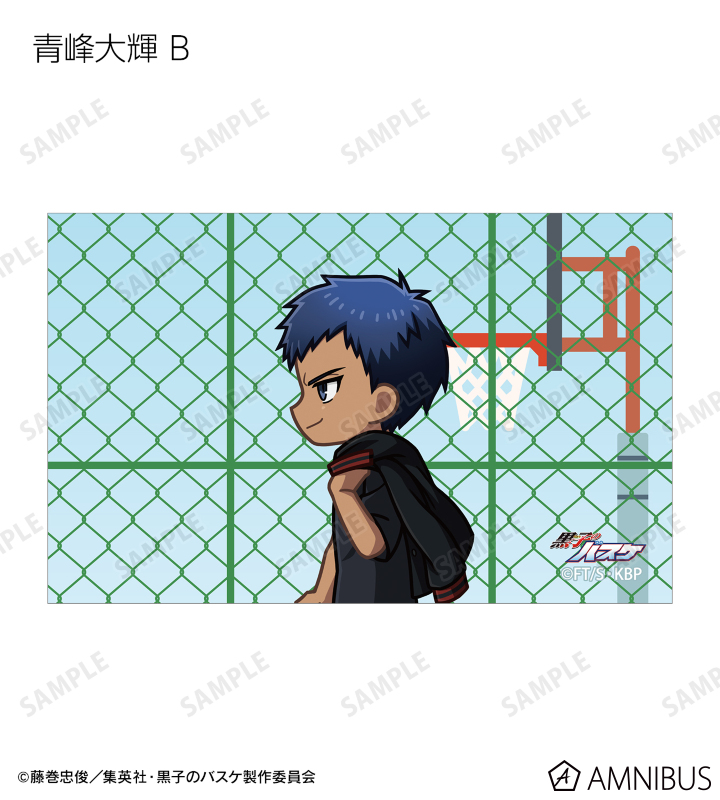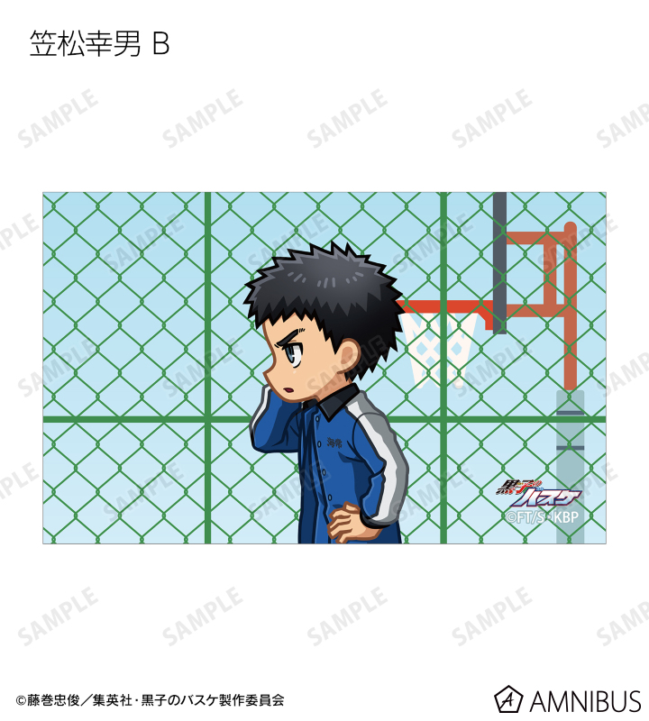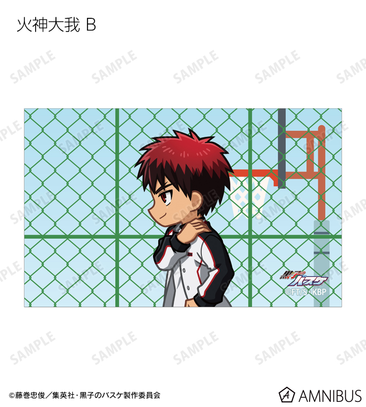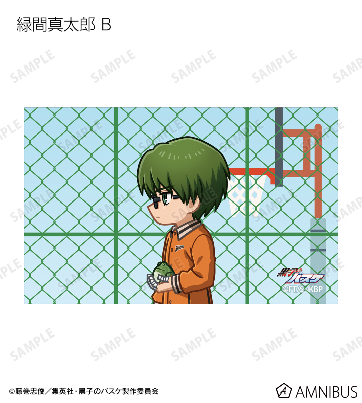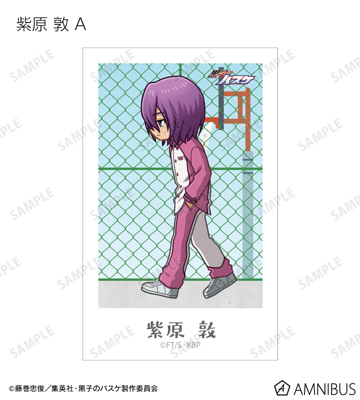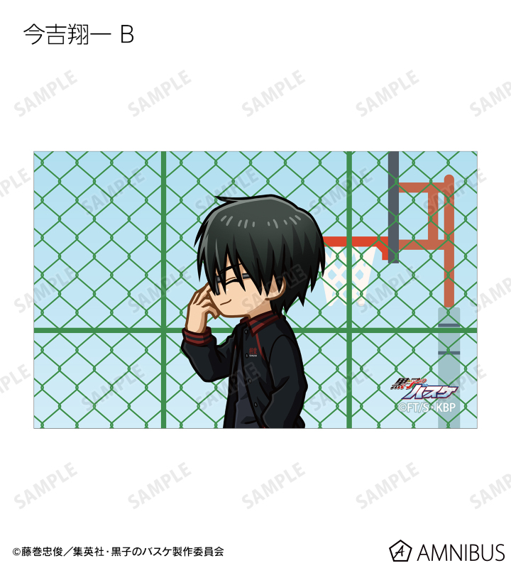 黒子テツヤ、火神大我、黄瀬涼太、笠松幸男、緑間真太郎、高尾和成、青峰大輝、今吉翔一、紫原 敦、氷室辰也、赤司征十郎、黛 千尋が歩いているちびキャラを新たに描き起こし、イラストカードに仕上げました。