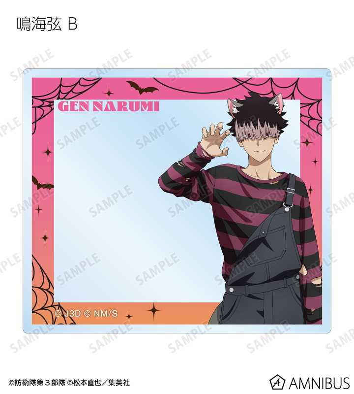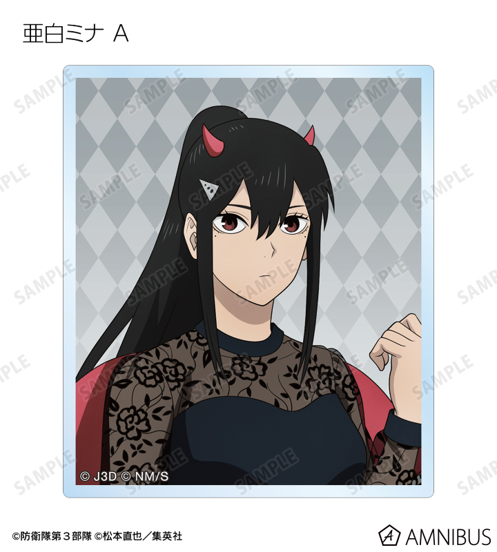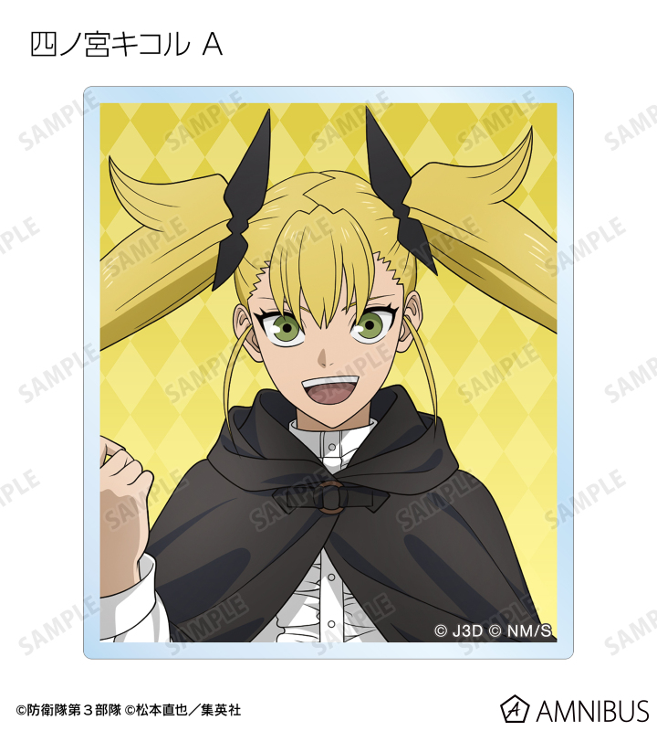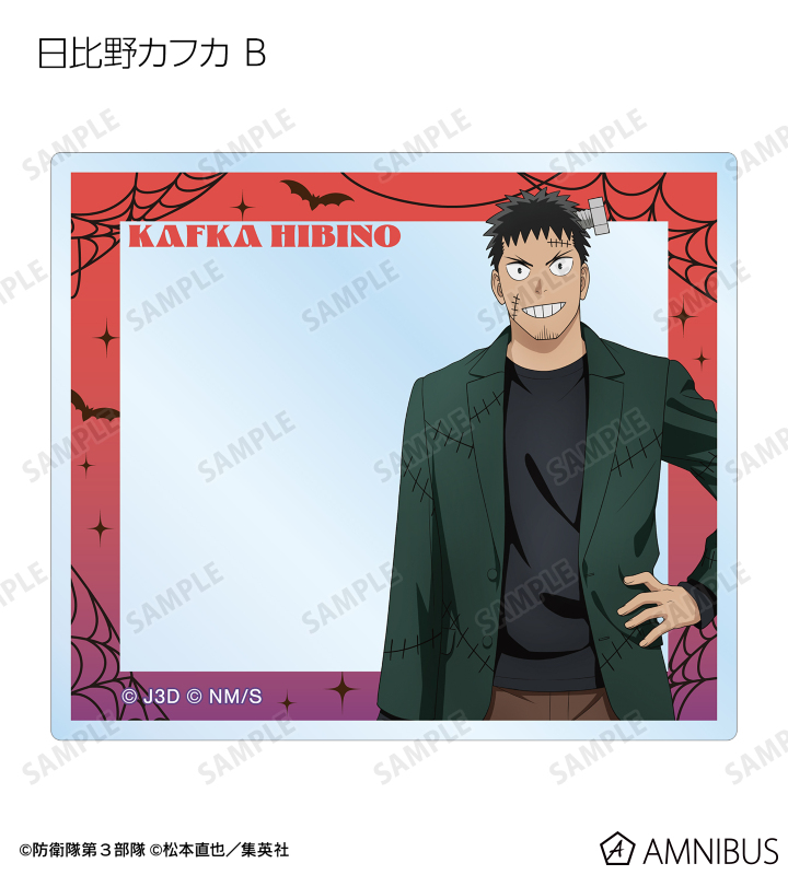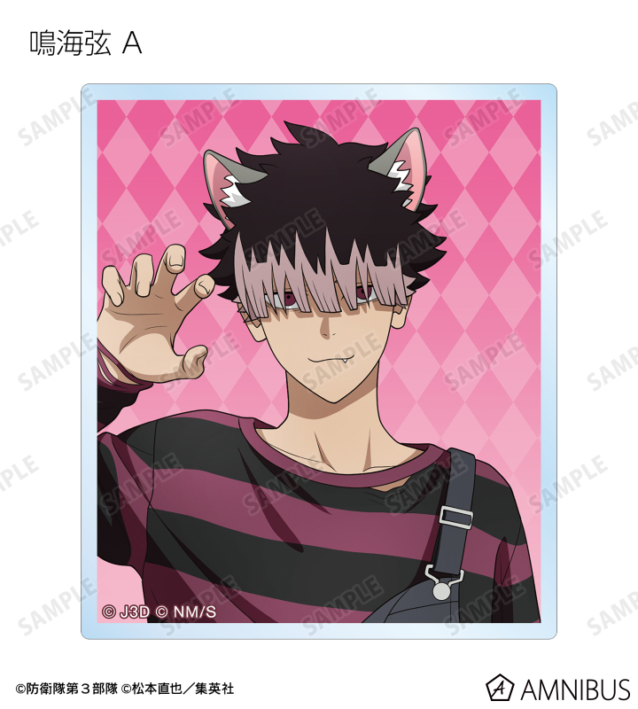 日比野カフカ、市川レノ、四ノ宮キコル、亜白ミナ、保科宗四郎、鳴海弦の描き下ろしイラストをアクリルカードに仕上げました。